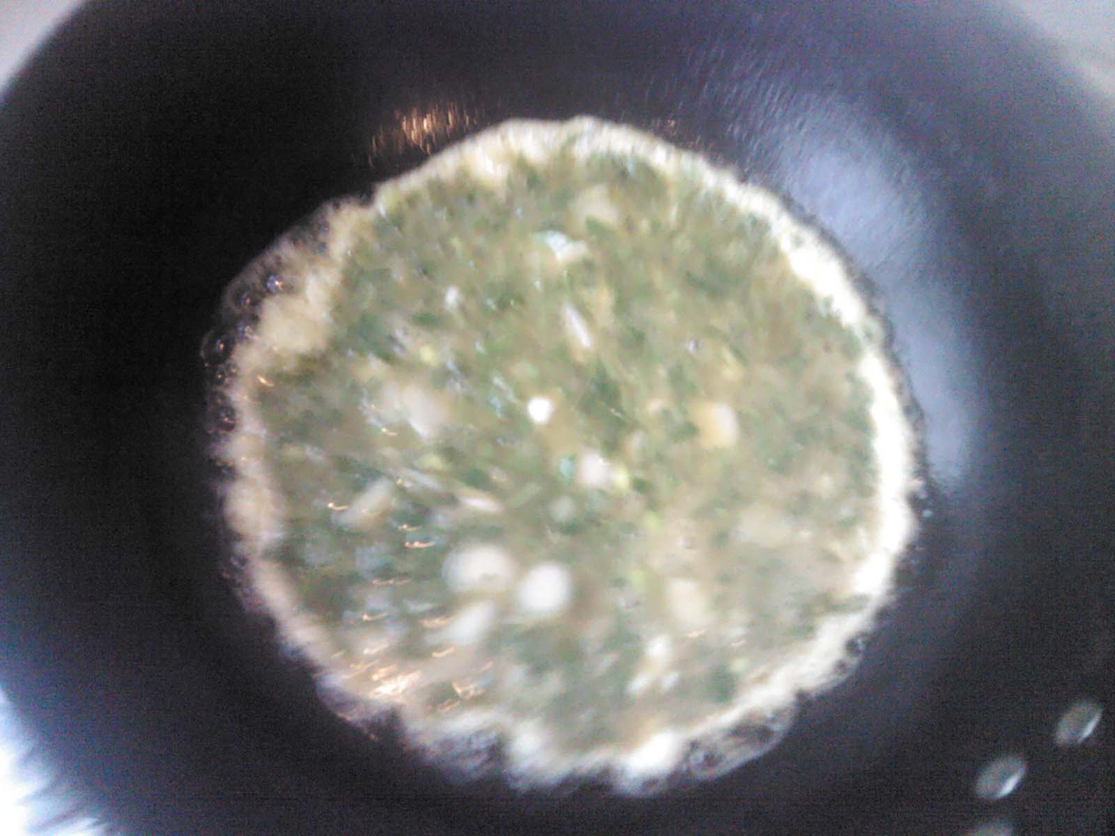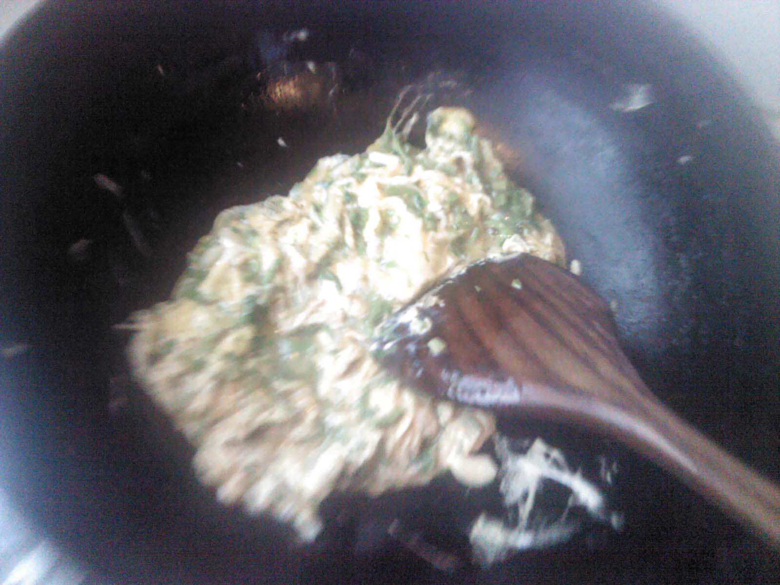 锅里倒点油,打着火,倒进鸡蛋。一会儿就熟了,可忘了放盐了,最后在炒鸡蛋上撒了点盐面。好难吃啊,大概是火大了,鸡蛋黑糊糊的略微有点苦。不过自己做的,还是蛮有成就感的。