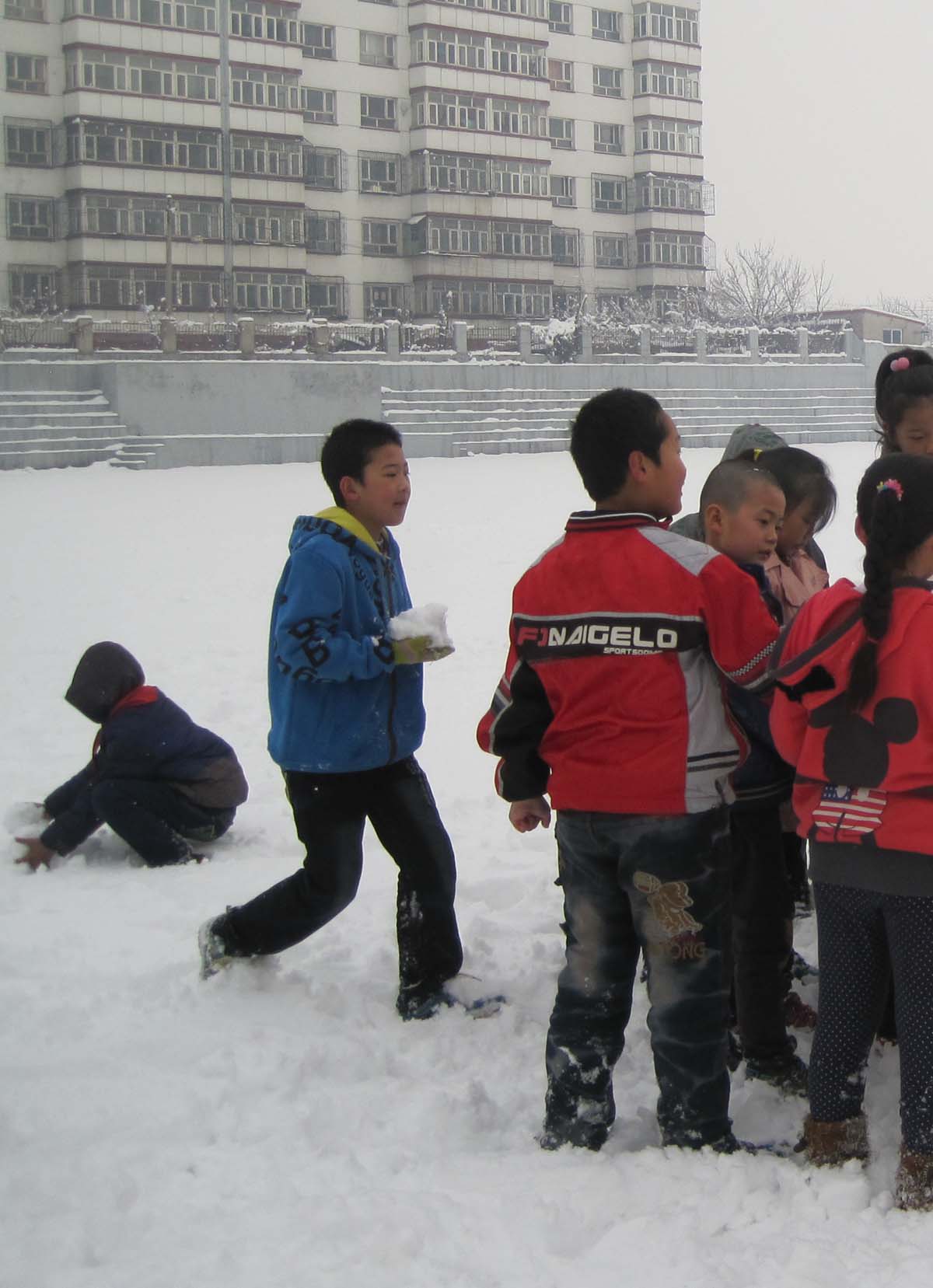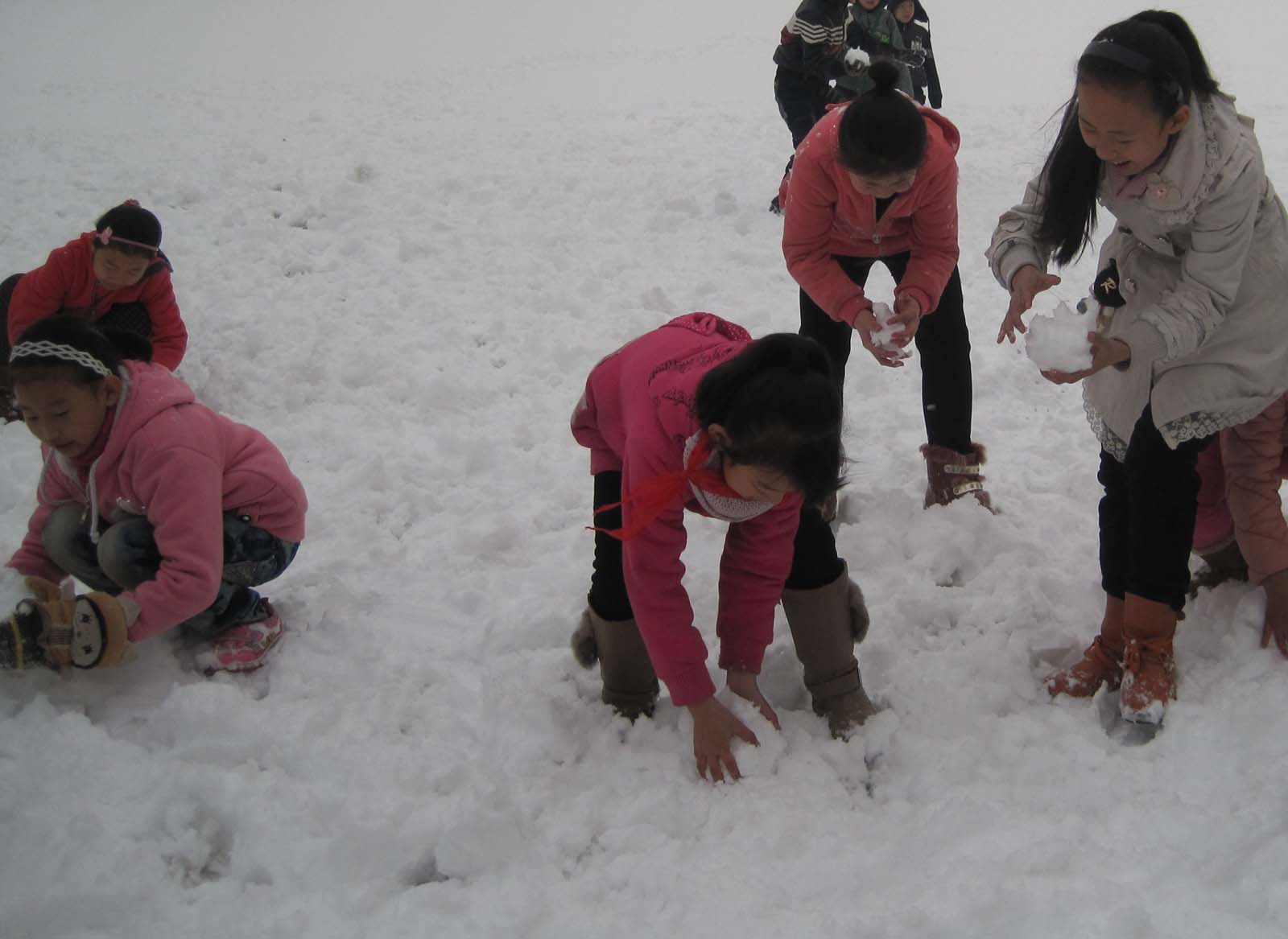 我和小伙伴们开始玩儿打雪仗,我们从地上抓起雪,就向对方扔。雪还没有抓实,飞出的雪团散成雪雾,弄得我们头上、衣服上全都是雪,我们都快变成“雪人”了。雪团扑在我们的脸上,钻进我们的衣领,我们高兴地哈哈大笑。