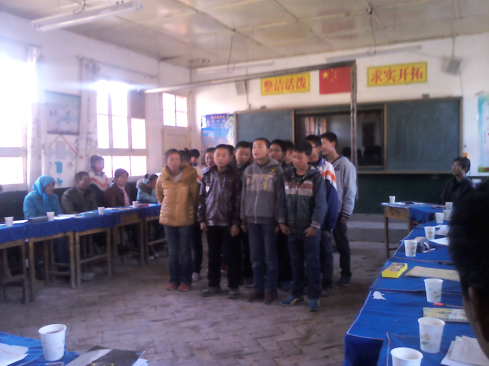 在家长会上,主持人首先代表同学们向爸爸妈妈们致了欢迎词,大家用你一首筷子兄弟的《父亲》表达了对父母的感恩的心。然后学生代表、任课老师、家长代表都代表发了言。我们也展示了我们的节目,在欢乐融洽的气氛中,我们起初的紧张和不安消失的无影无踪。