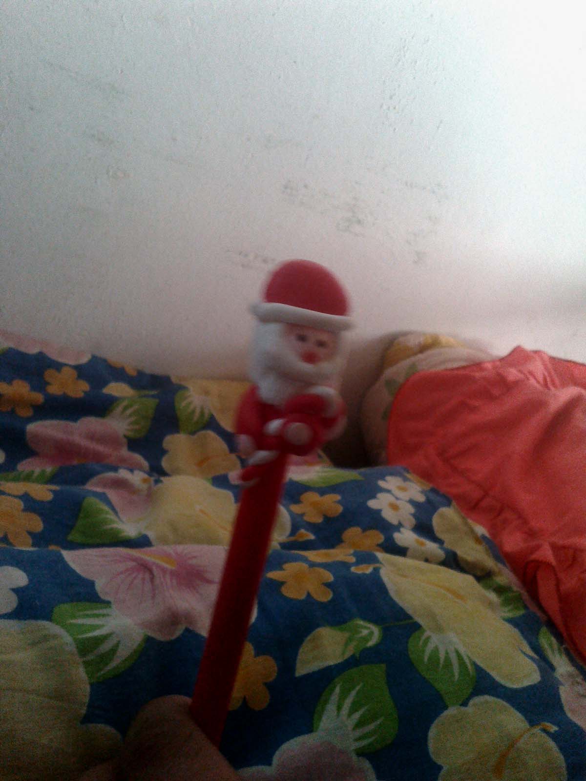 中午的时候,老师故做神秘地说:“闭上眼睛,一会儿圣诞爷爷就会把礼物放在枕头下。”我们可没那么傻,知道老师在故弄玄虚,马上去枕头下找礼物。果不其然,一个圣诞老人静静地躺在枕头下,看着我们。啊,原来是一支笔,是一支圣诞老人笔。我太喜欢了。