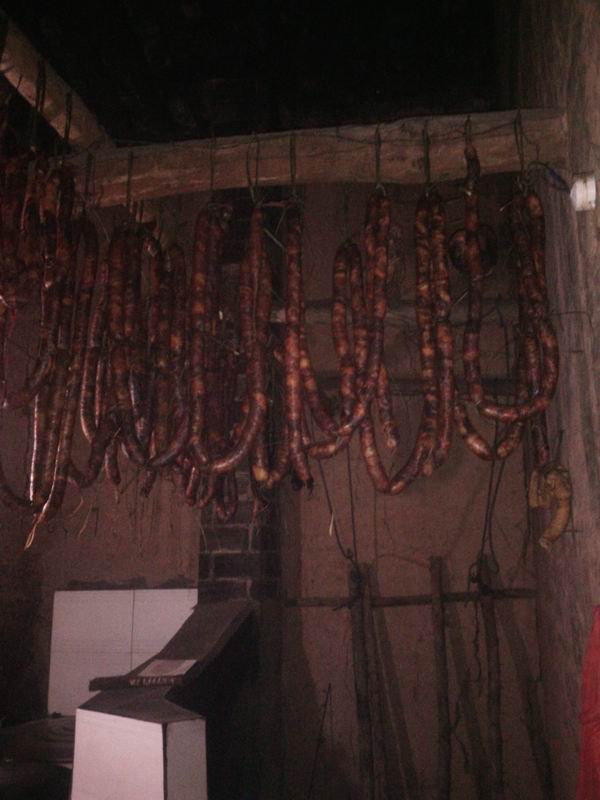 每年快要过年,家里就会杀年猪,外婆就又忙了起来。尽管要做那么多的事,但外婆还是忙得不亦乐乎。年猪杀后,要把新鲜肉用盐腌制成腊肉,储存起来。不止这些,外婆还要灌各式的香肠:肉肠、“老鼠”(即肠里灌的是排骨,农村俗名)、血灌肠,最后用柏树枝熏制。种种事情,全都由外婆一个人完成,这表明外婆十分能干