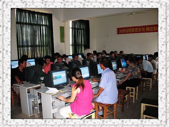 原来,今年暑假,在学校领导的安排下,对全阳郭镇的中小学校长进行电脑培训,因为从2004年以来,国家虽然配备了电脑设备,但是没有专业的人员去维修,电脑现在坏的很多。在参加培训的队伍中,年龄在40对以上的教师很多的,他们没有很好的接触电脑,当让学起来就比较困难了。让我们看看他们是怎样学的吧!