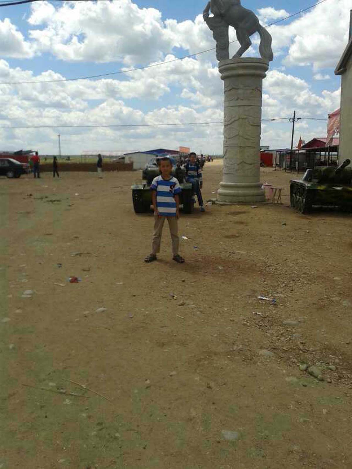 到了张北的中都草原,草原可真大啊。门前两根大圆石柱子,柱子上雕刻着不同形状的动物,柱子顶上一匹马儿腾空而起,非常有气势。再看里面,草地绿茵茵的,一眼望不到边。