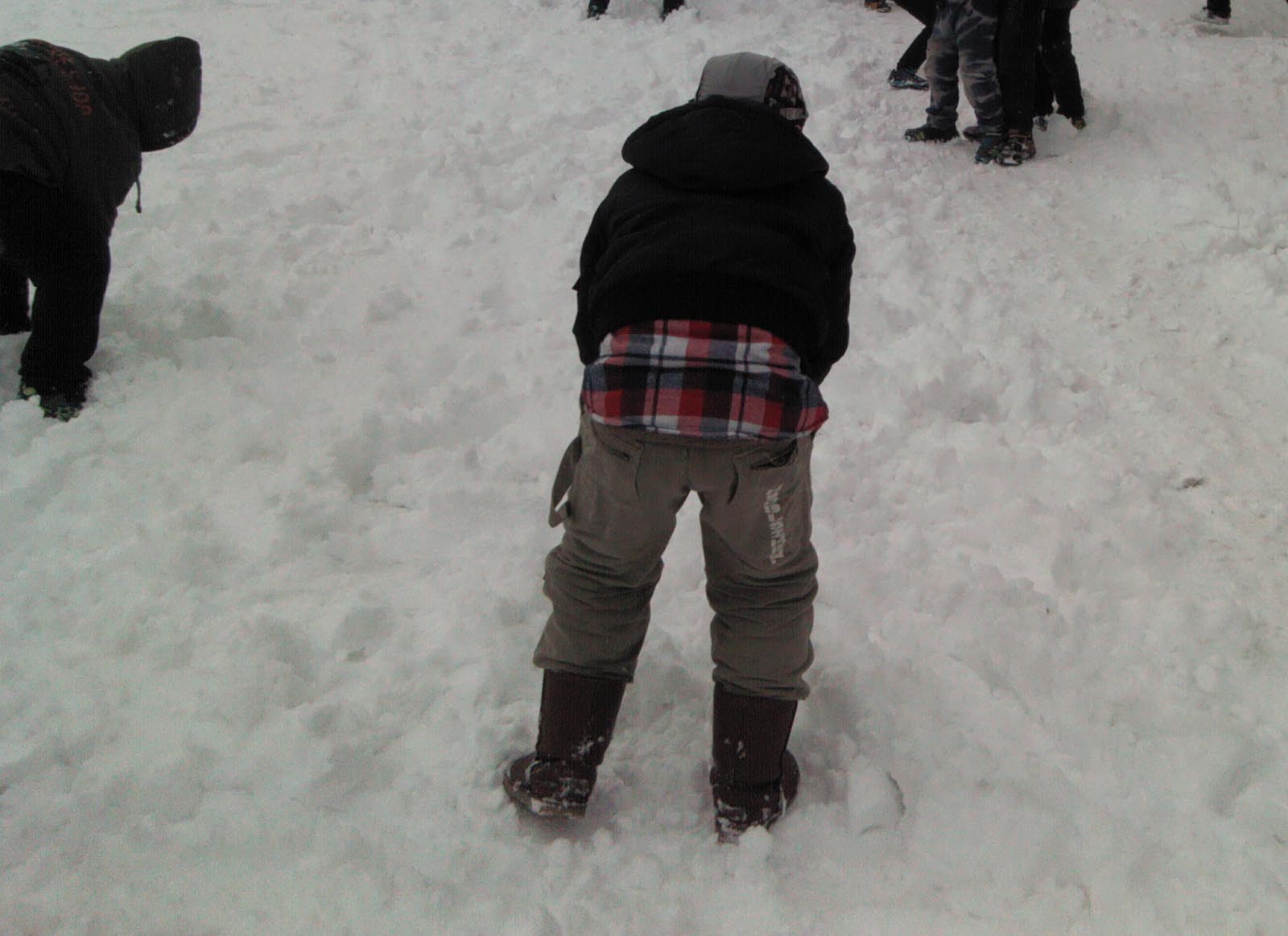 那边的同学在堆雪人,他们先在地上滚一个大雪球,然后再滚一个小雪球,把小雪球放在大雪球上面,一个雪人就做成了。还给他捏出鼻子,找两颗小煤球做它的眼睛,一个栩栩如生的雪人就立在你面前,看着他那憨态可掬的样子,真惹人喜爱。