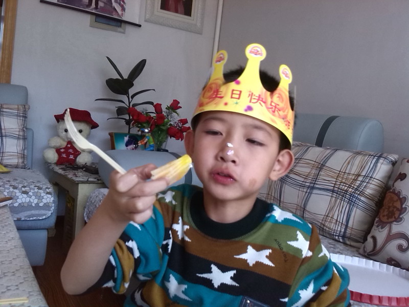 虽然给我过生日的人很少,但我很开心,妈妈给我做了好多好吃的。他们在我鼻子上,脸上都抹上了蛋糕,还拍了照片。