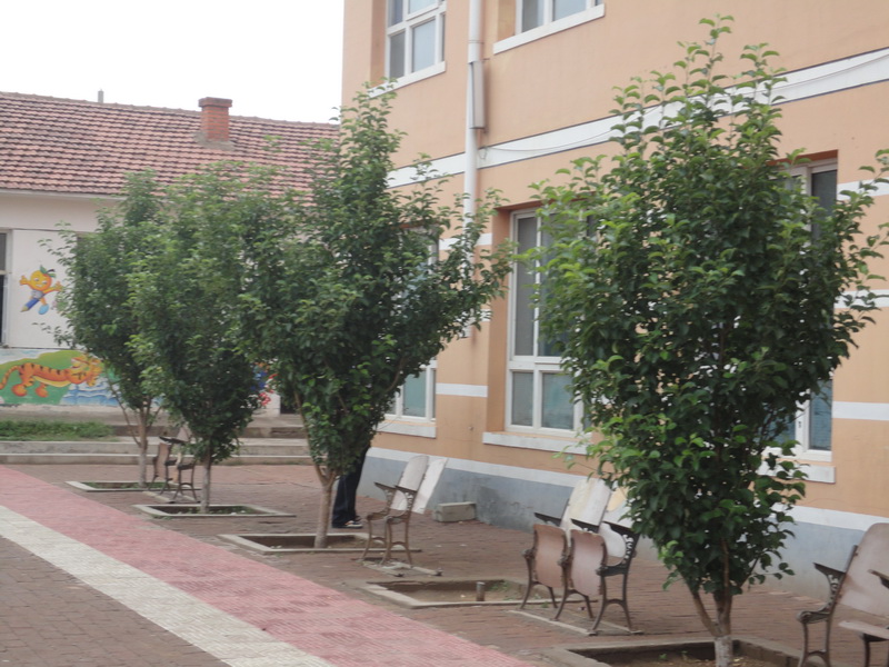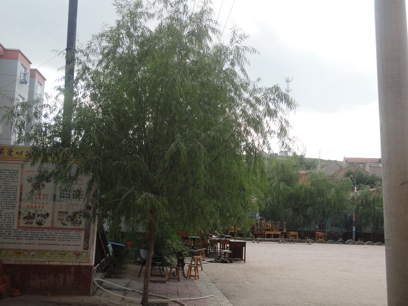 再往上走,就会看见四棵柳树,耸立在宽阔的校园里。当有风吹过的时候,柳条就像秀发一样,随风舞动。