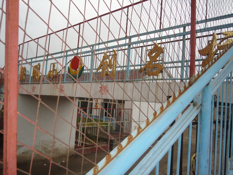 站在教室外的窗户边,就能看见宽阔的操场。还有一座弯弯的天桥。前面操场还有一个升旗台,每个星期一同学们都会在升旗台前升国旗,奏国歌。