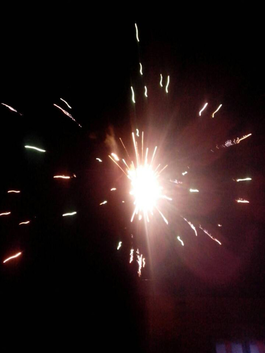 门外的小朋友们在兴高采烈地放烟花,花花绿绿的焰火把夜空点缀得亮如白昼。我拿起我的烟花,点燃了导火索,随着声声脆响,焰火喷涌而出,一个,两个,三个……我望着这热闹的天空,看着时而红,时而绿,时而蓝的焰火,心情别提又多爽快了。