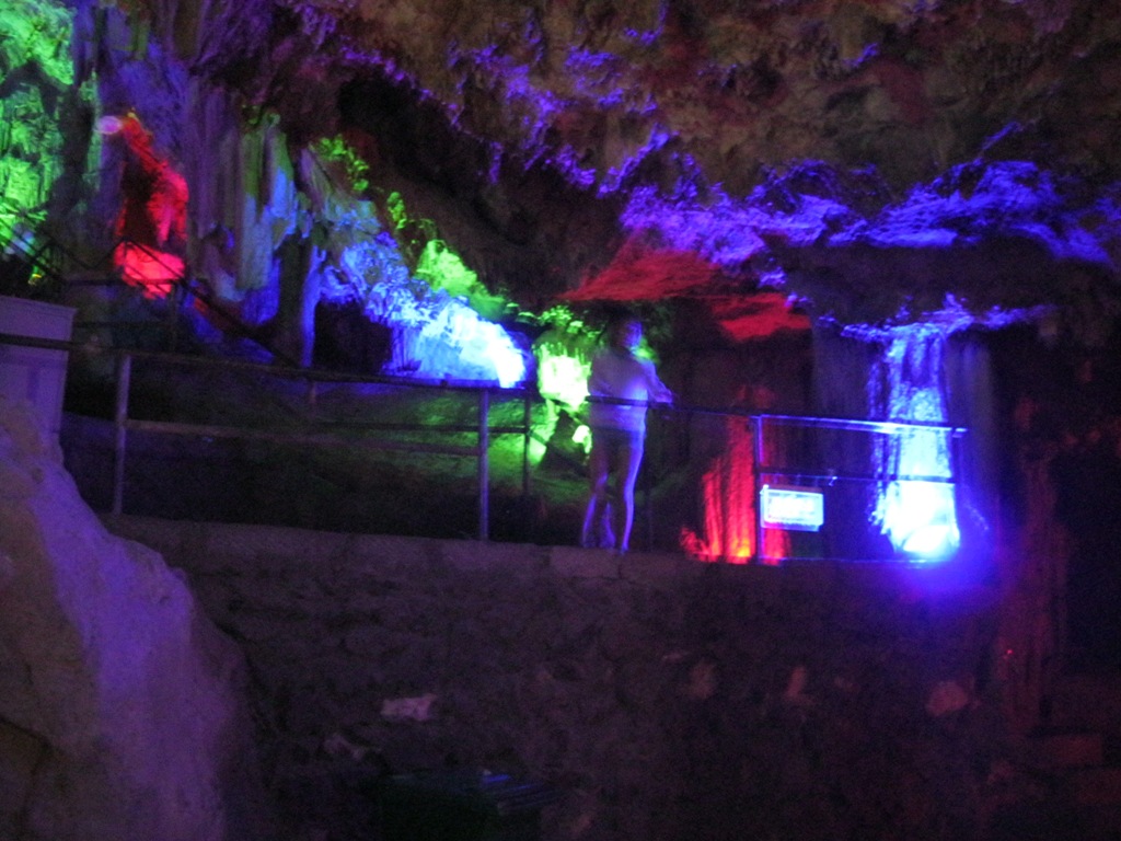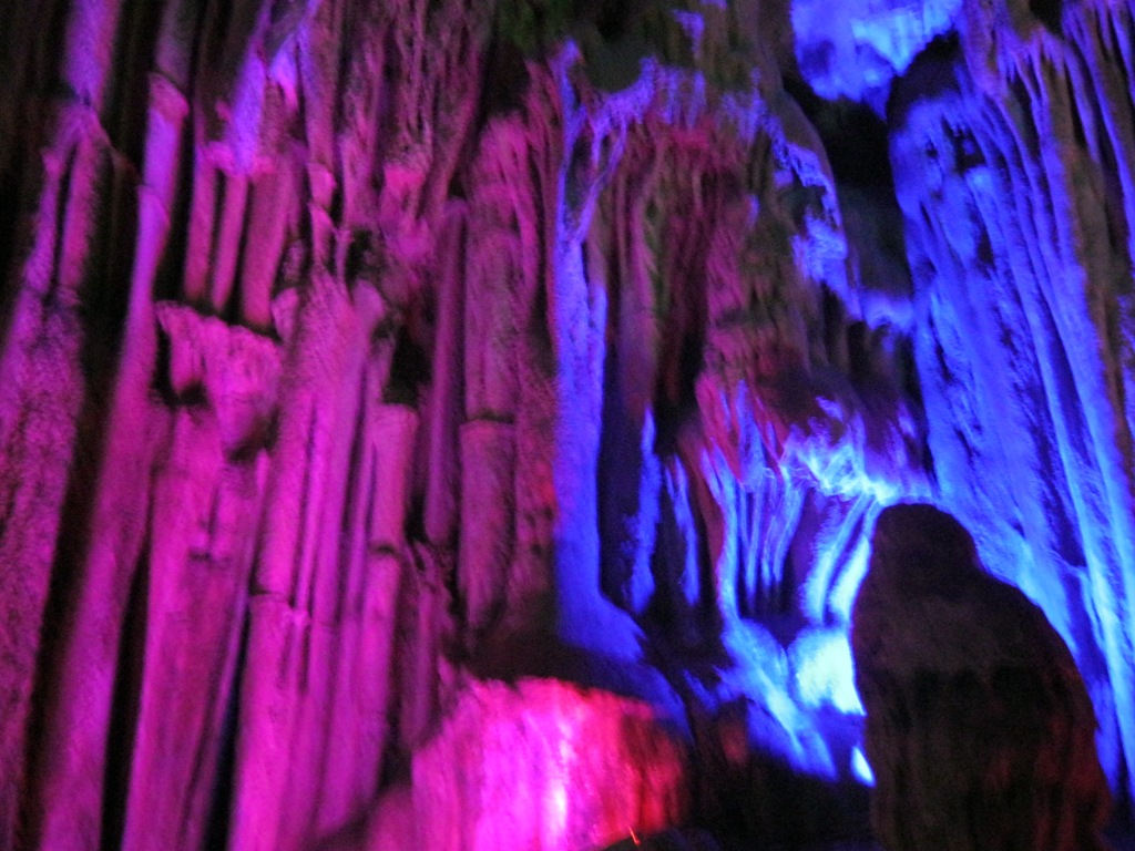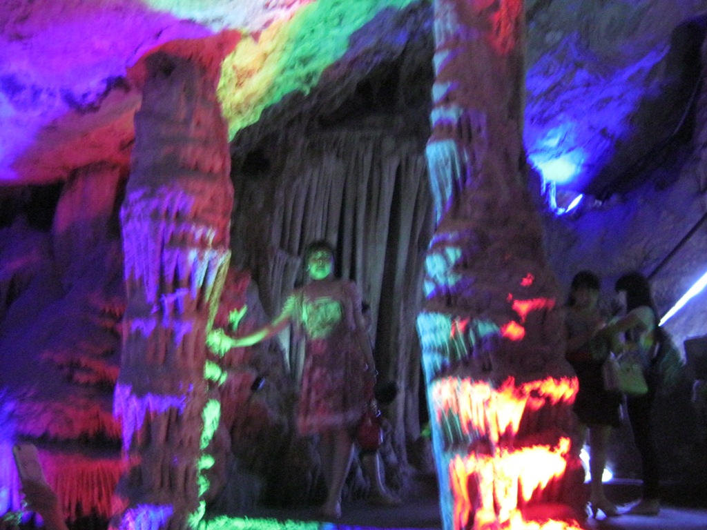 进入溶洞,首先映入眼帘的是,一座座假山,它们矗立在溶洞之中,犹如这里的守护者一般,一动不动,五彩的灯光照耀在整个洞中,显得格外炫目,耀眼。我不由得拿出手机照了几张相片,心中赞叹着,真美丽。慢慢的我们进入了洞的中心。