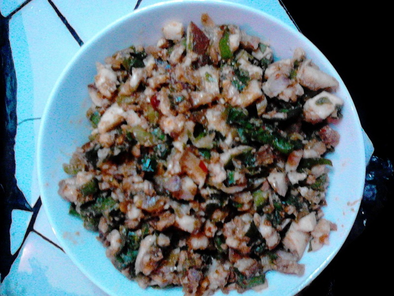 剁馅十分讲究。要用新鲜的五花肉做肉馅,因为五花肉不肥不瘦吃起来不腻而且口感极佳。将五花肉剁成大小均一的小碎粒,再加上自家的大葱,混在一起。打一个鸡蛋与肉馅揉匀,为的是锁住肉的汁水,保证煎好后的口感。