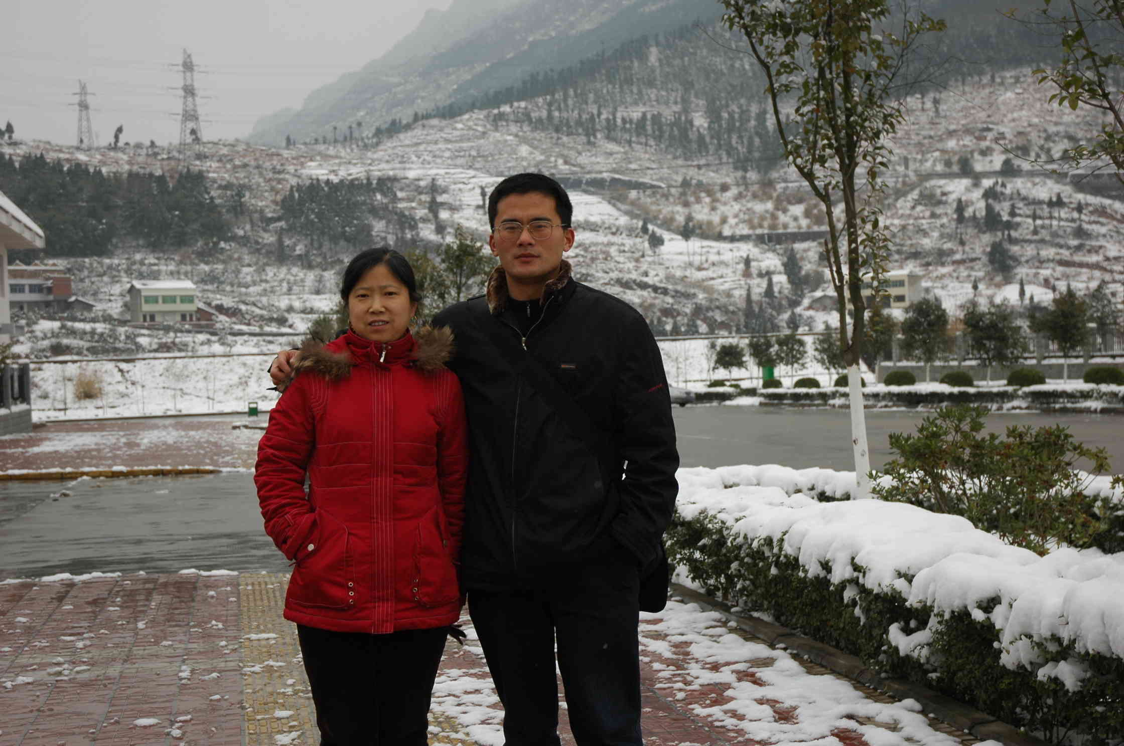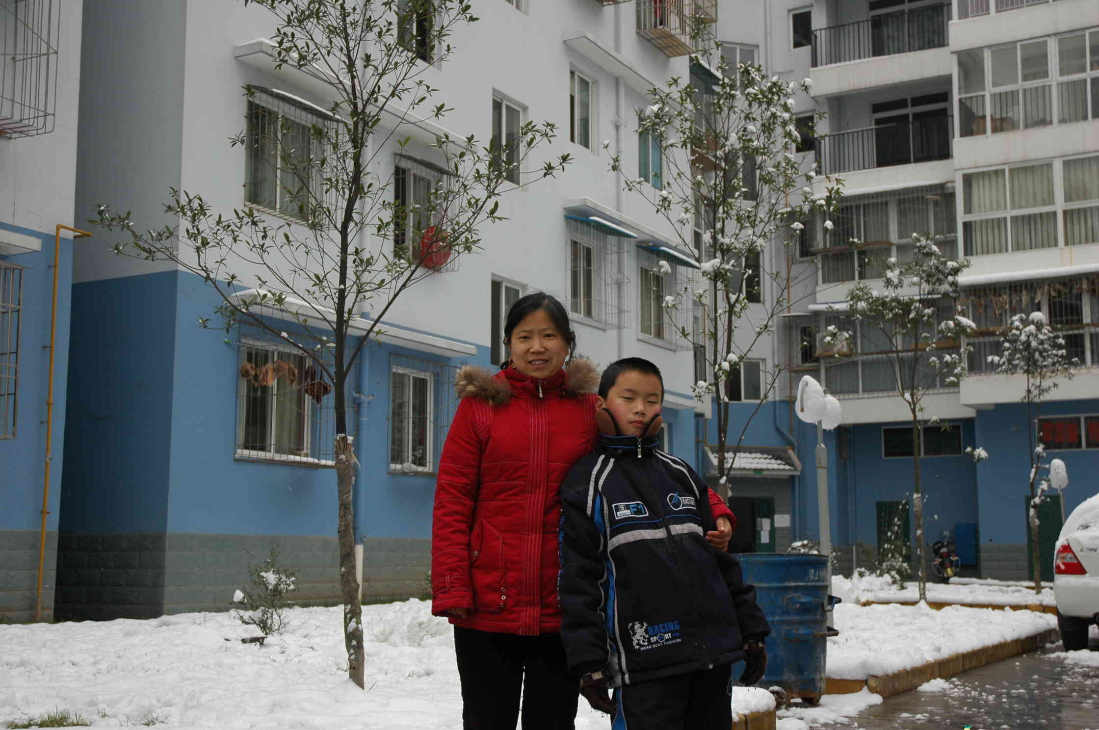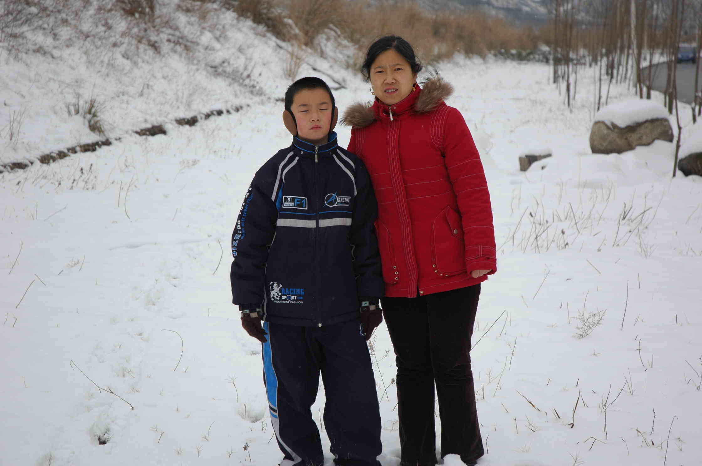 这时爸爸妈妈来了,叫我去照相。我们叫别人帮我们照张全家福。我们一家三口加上美丽的雪景,记录了这一难忘的时刻。