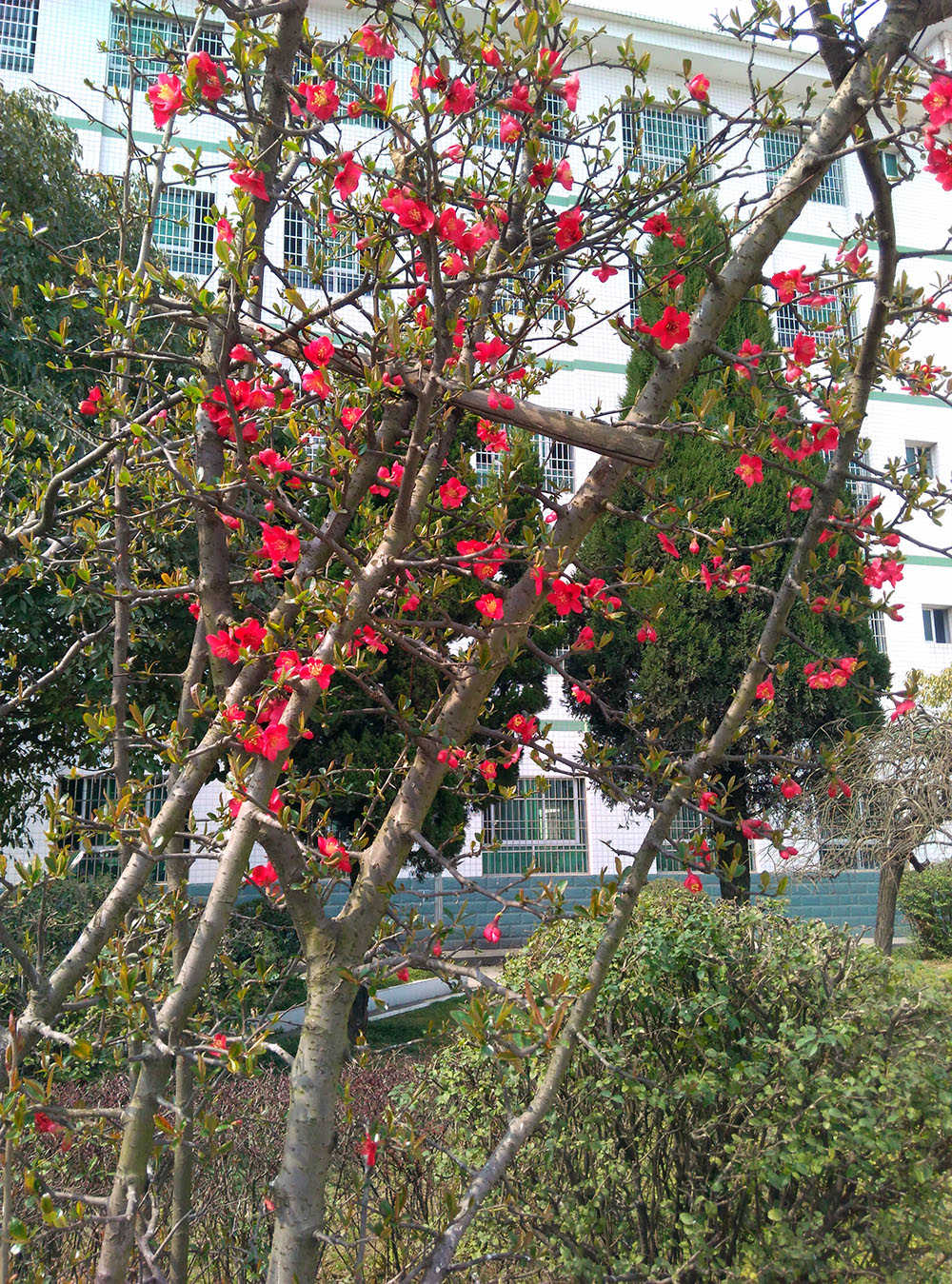 春天来了,校园更加美丽了。郁郁葱葱的树木像仪仗队似的,排得整整齐齐,仿佛在欢迎春天的到来。同学们在温和的春风下,有的打篮球,有的打乒乓……