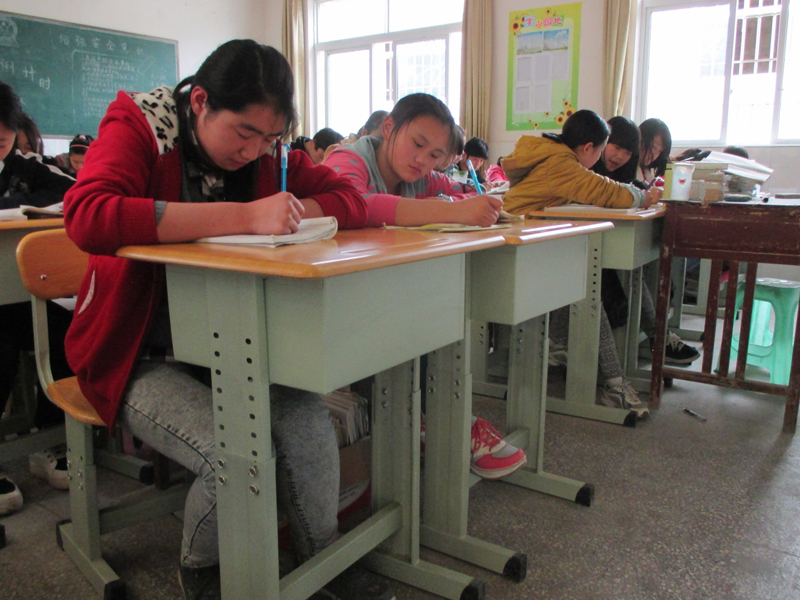 学校换新桌椅了,配套的,很漂亮。我抚摸着光滑的桌面,想着:这么好的桌子,不能在上面刻一些激励自己奋发图强的话了。