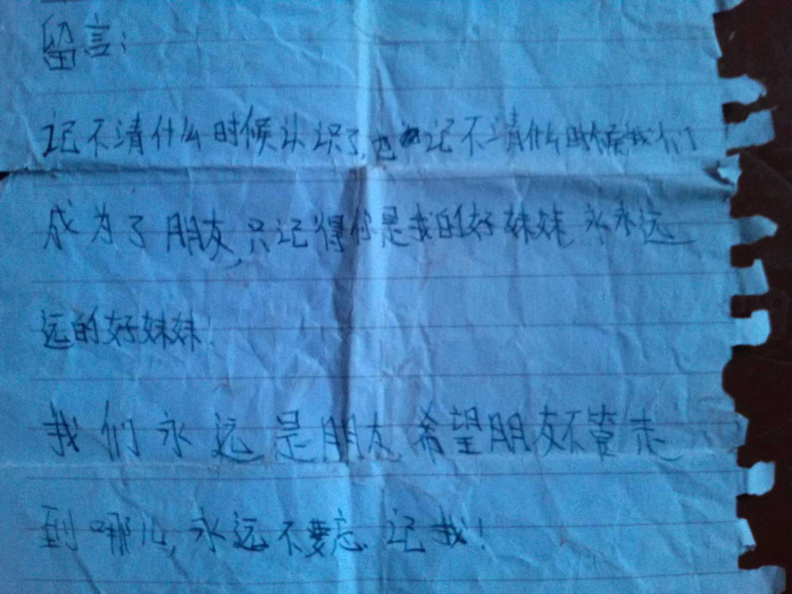 亲密的朋友: 你好!翻开旧时的同学录,在那文字间,突然看见了你的名字,你的爱好,你的梦想还有对我的祝福。 你在上面写着:我相伴了你七年,七年中我们笑过,哭过,相识,相知,朋友,姐妹,这几个词我们都体验了。
