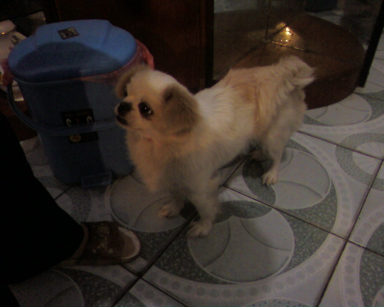 胖胖什么东西都吃,在它吃东西的时候,你伸手去摸它,它表现出要咬人的样子,它以为你要去抢它的食物呢!它一天吃四顿饭,一天下来,它的肚子就像装满了的气球一样鼓鼓的。它长到七个月的时候,就学会了照镜子。它先左看右看,发现镜子里面有一条和它长得一模一样的雪白小狗,然后叫几声,镜子里的小狗也跟着叫了几声;它认为那只小狗在镜子后面,结果镜子后面什么也没有,它就跑东跑西,似乎在找镜子里的小狗,惹得我们哈哈大笑。