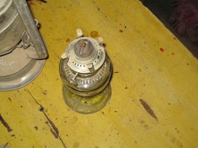 这是老式的煤油灯,一根棉线 ,一个玻璃的瓶子。棉线前面用铁线固定好,将煤油到入容器内 ,再把棉线用煤油弄湿,然后棉线的一头放进容器内的煤油中, 另一端放在外面,就可以照明了。为了防止风把火吹灭,人们给油灯加上了玻璃罩。这样的油灯不怕风吹,在户外也照样使用,而且燃烧充分,不冒黑烟。