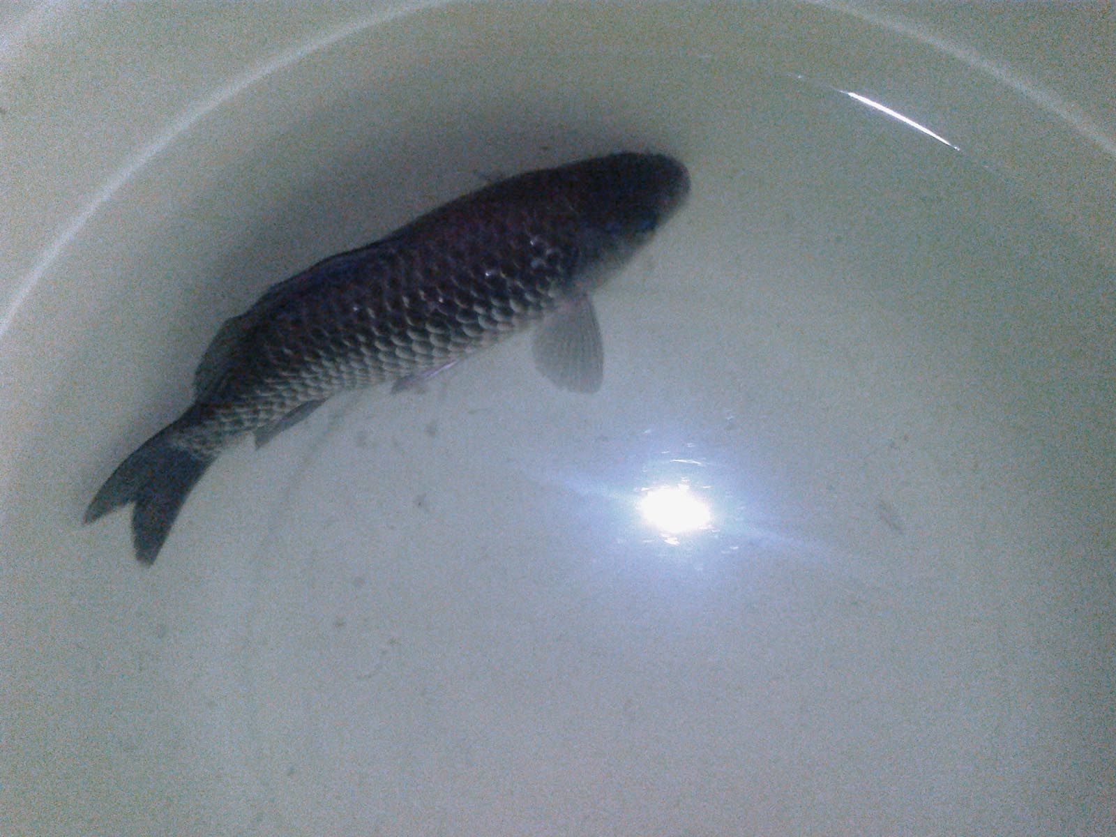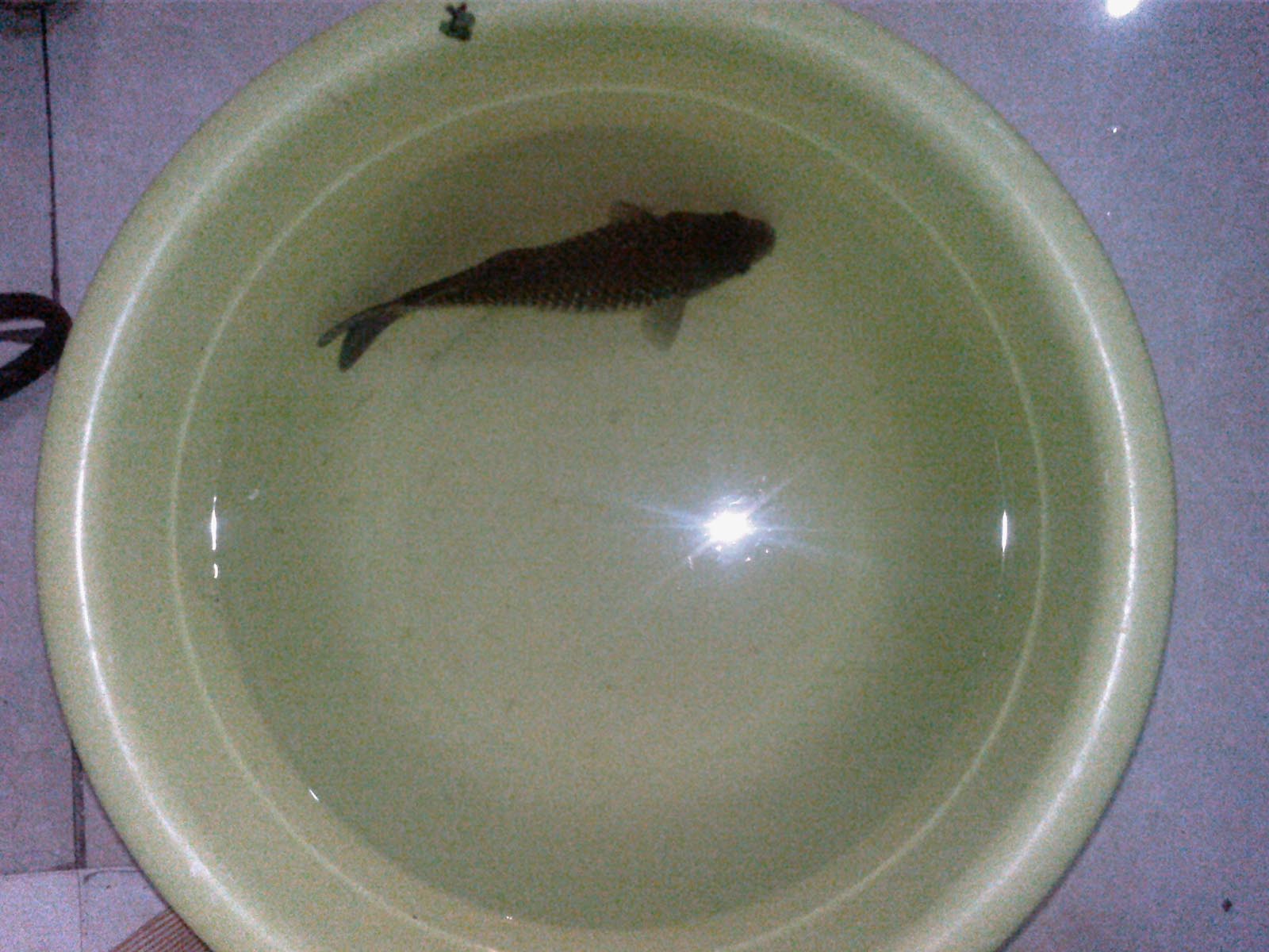 今天是周日,和妈妈去市场上转了圈,那边有个卖鱼的,长方形的鱼箱里只有两条死鱼和一条小小的鱼。那条小鱼也是鲤鱼,只是身材特别小。卖鱼的叔叔说这条鱼不大,也没人买,就送给了我。