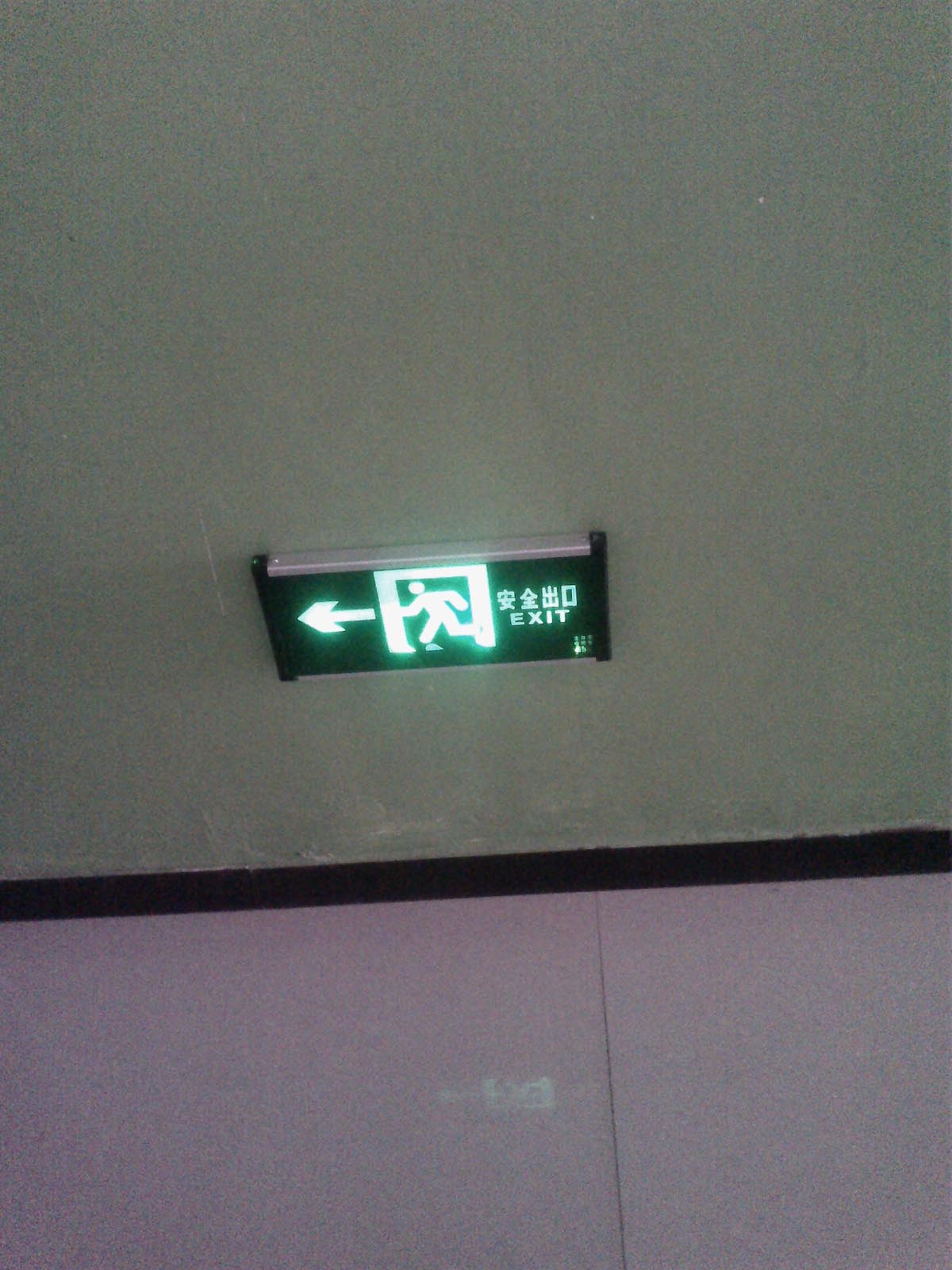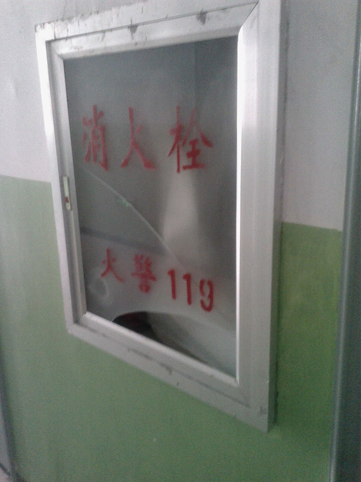 请看,这个消防窗口的玻璃又不知道被谁打烂了。曾记得这块玻璃已更换过一次了,没过几天就又成了这样,你们不心疼吗?再看那个指路灯,已换过好多次了。因为它装得低,有的同学跑的时候不小心就会踢到,可我们在楼道里能不跑吗?