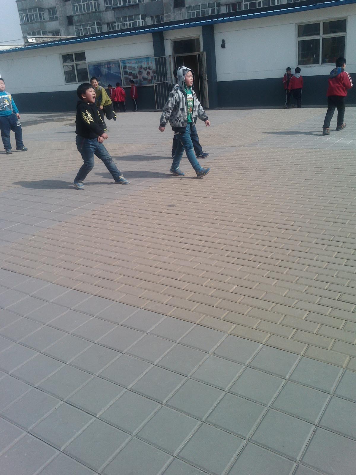 那边有一伙男同学在打沙包,沙包在天空中飞舞,小同学在机敏地躲闪着。一不小心摔了一跤,被打个正着。抱着沙包开心笑,冲出场外。那两个男同学互抢沙包,都跌倒了,抱在地上翻滚。好不开心啊。