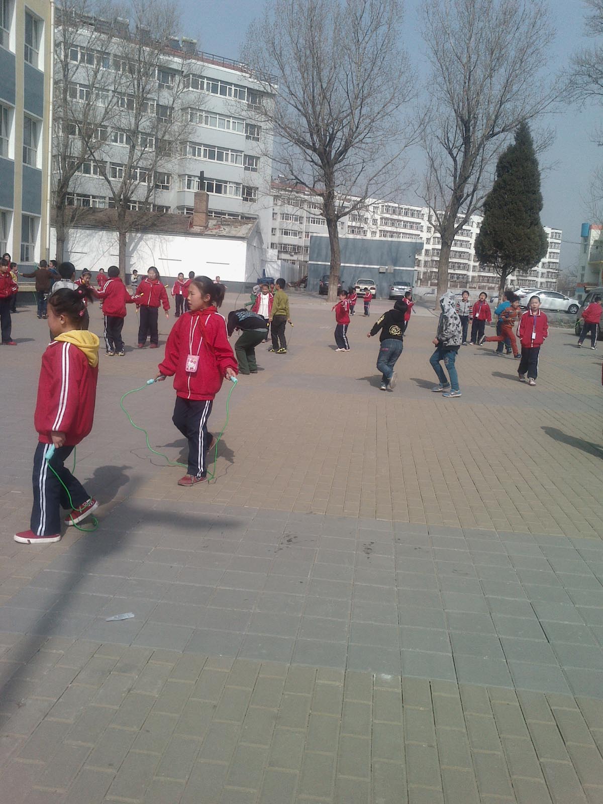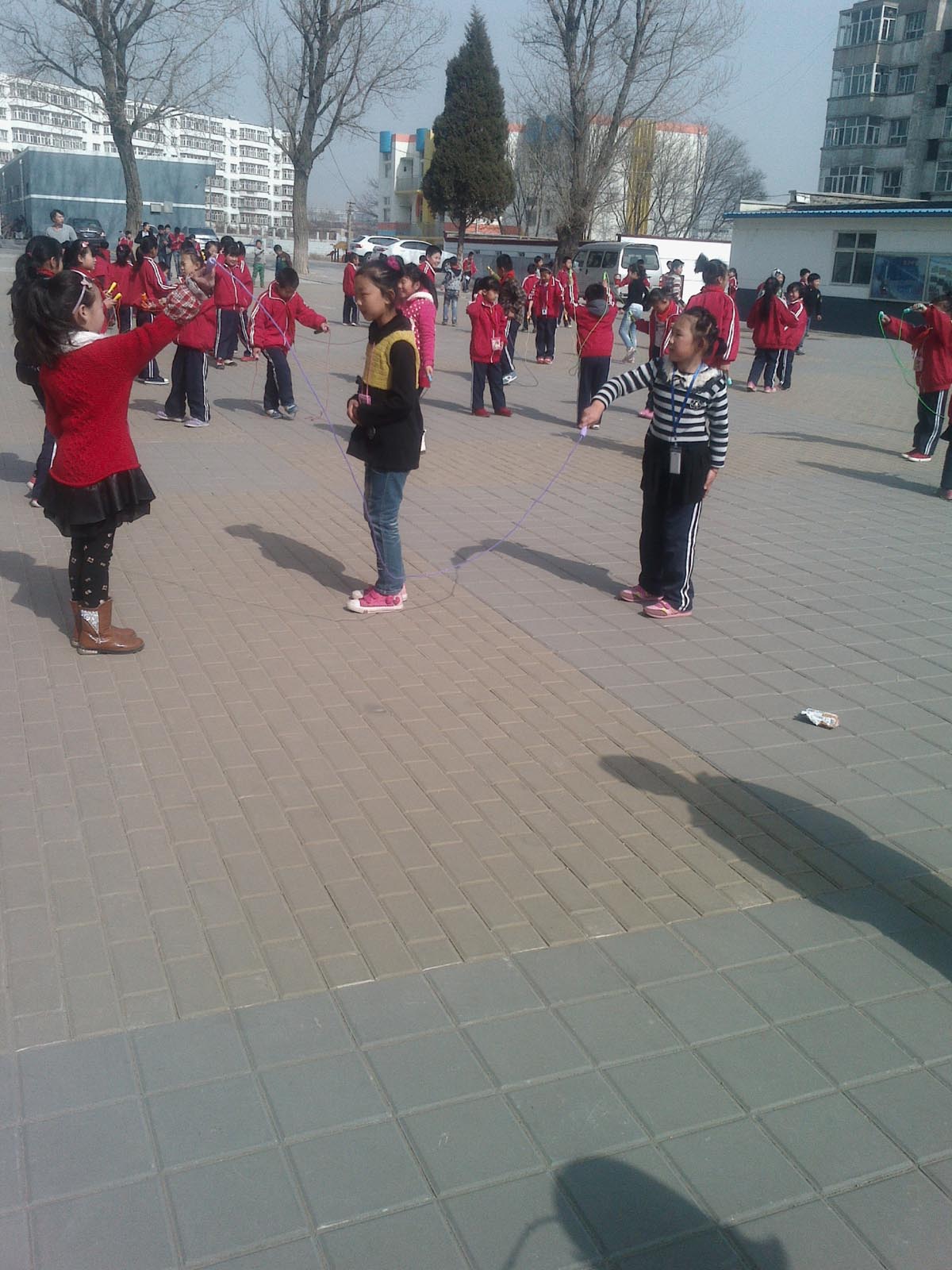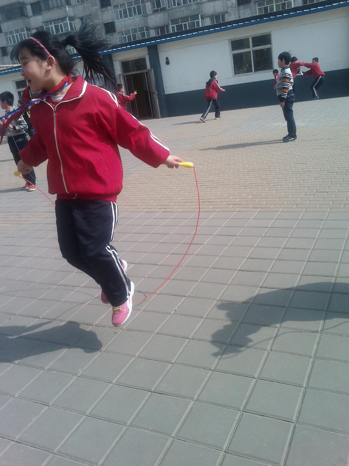 校园里跳绳的特别多,绳子的颜色各异,上下翻飞的跳绳像一道道五色的彩虹,彩虹下是一群活泼的孩子。跳绳的形式很多,有的单人跳,有的双人跳,有的跳大绳,还有的编着花样儿跳。