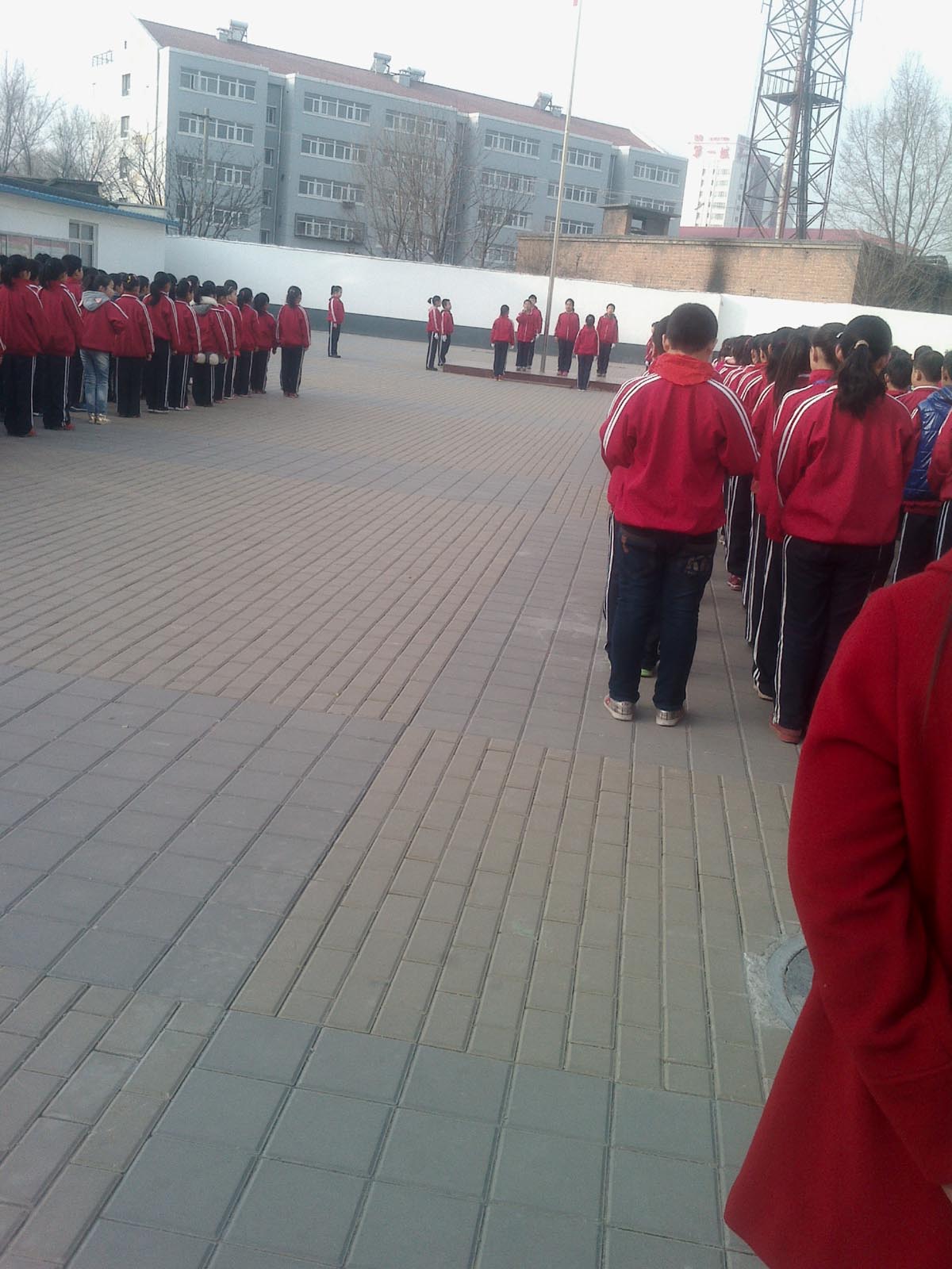 自从我们搬进新楼房之后,今天是第一次升国旗,我们的心情很兴奋。这次承接升旗任务的班级是五二班。首先,我们先集队,每个班按照预定的位置站好,我们都穿着校服,显得很精神。