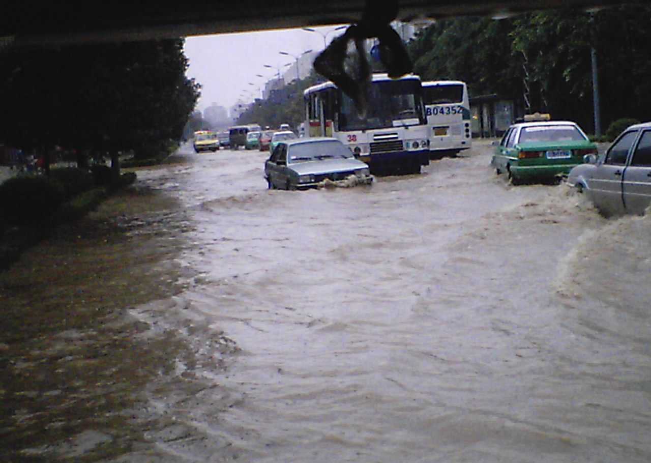 我撑起一把伞走向学校。在雨中,街上仍然是人们忙碌的身影,环卫阿姨在检查下水道,做好疏通工作,。我小心的走在光滑的水泥地板上,生怕一不留神滑倒在地。有时候,车子"嗖"的一声从你身旁擦身而过,溅了一身水花。虽然是夏天,我也感到一丝丝的凉意,我快步向学校走去。