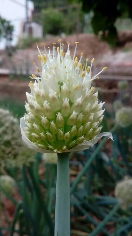 大葱,你认识吗?没错,它正是我们厨房中一种常见的调味品。它的形状很特别,和小草有点相似,它的身体是笔直的,是空心的,上面有一个骨朵儿,远观:微风拂过,有点像亭亭玉立的小女孩在空中飞舞。
