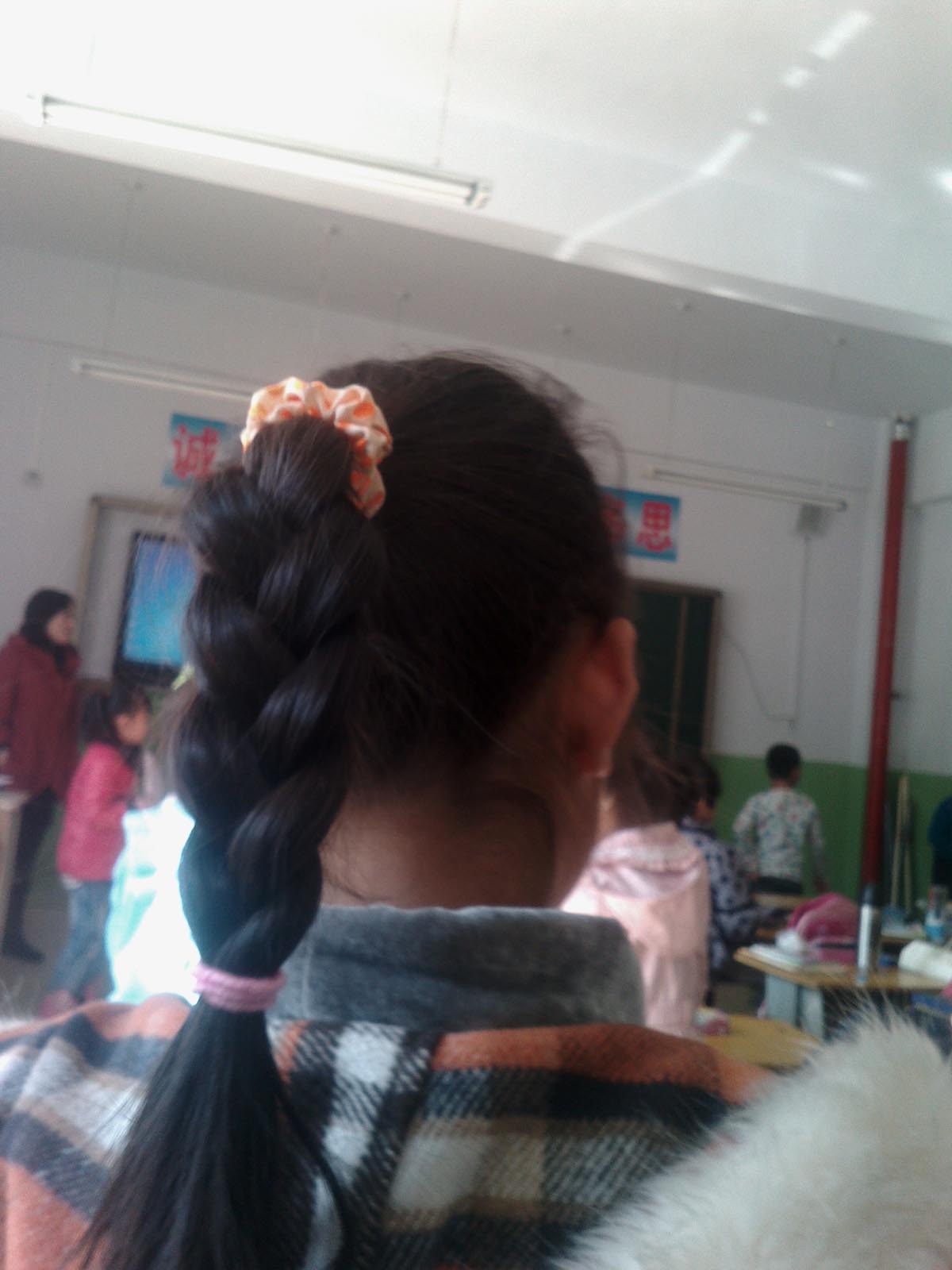 小妹妹样子很好看,瓜子脸,白白的。可能是下课玩得疯狂,头发乱蓬蓬的,我和她姐就给她重新梳头,扎了根粗粗的辫子。我们给她收拾利索,小妹妹一下子变得更精神、更漂亮了。