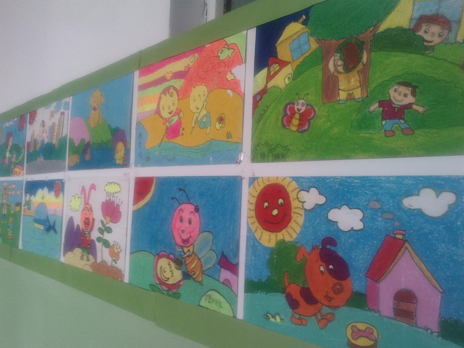 今天我们去看画展了,所展出的画都是同学们自己画的,老师捡画得好的贴在了墙上,让我们去欣赏。首先,我们排好队,一个个走进了美术教室。