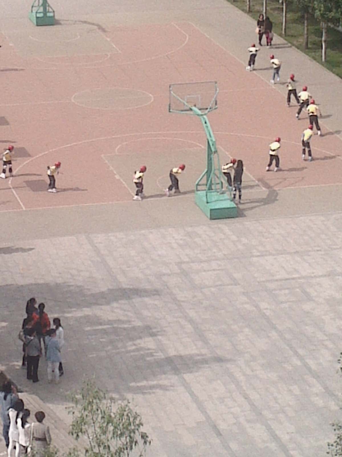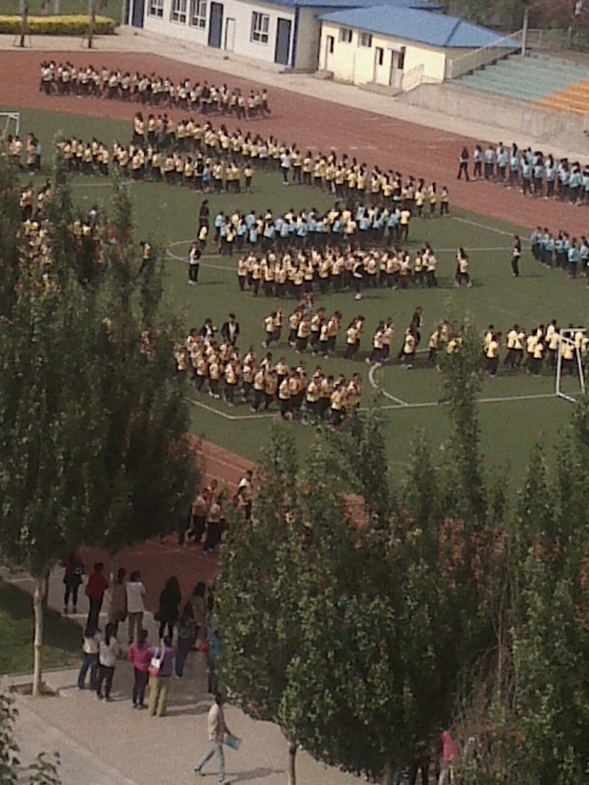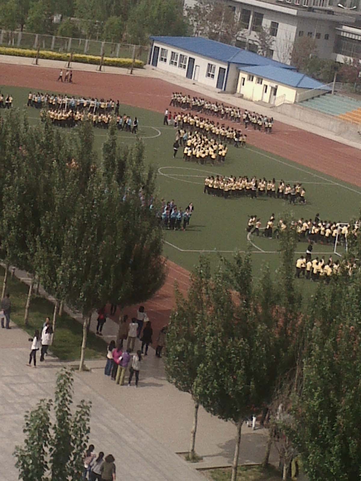 初到一小,校园非常整洁,操场也特别漂亮,有跑道,还有足球场。我们被老师领上了五楼的平台上,在上面观看大课间表演。学生们踏着音乐迈着整齐的步伐走进操场,体育老师一声口令,音乐响起,同学们一起有节奏地拍手,还高喊口号。