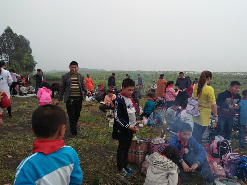 尹老 师告诉我们,这一周要组织大家春游。我们这次春游的主题是"励志桃园人生,亲子远足游"。事先老师制定了春游的方案和邀请家长参加,我们班好多家长都愿意参加。午餐吃什么呢?我们通过考虑,分组进行野炊,比一比哪一组的菜可口丰富。