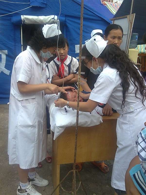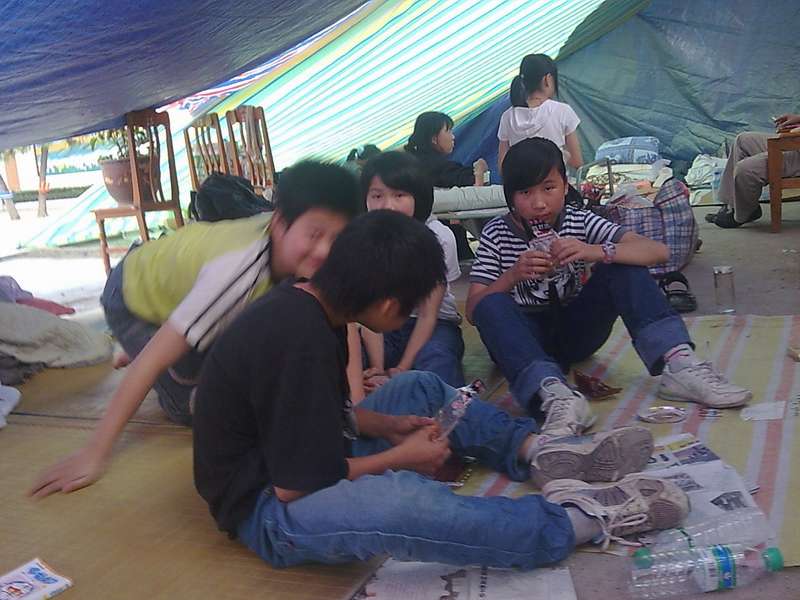 我推门出去,看见瓦不停地从房顶上落下来,人们在大街上乱跑,我来不及多想,鞋都没换就和人们跑了出去。楼下有些人没穿衣服就跑了出来,大家议论,这可能是地震。周围到处都是碎瓦堆和瓦落下来溅起的灰尘。人们四处逃窜,哭的哭,喊的喊,就在这时地动山摇停止了。