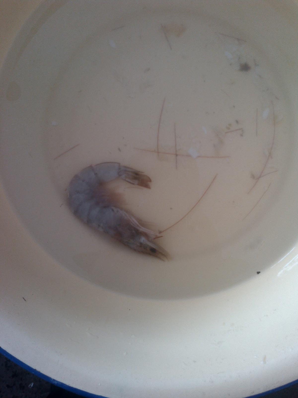 奶奶说得剥了虾外面的皮才能吃,我就一点点先拔了虾头,再慢慢地剥了虾皮,只剩下了白白的虾仁,胖胖的散发着清香。把它放在嘴里,还是一点味道也没有,只有一股海鲜的香味。大概是奶奶盐放少了吧。 初次吃虾,感觉没有电视里演的那么诱人。