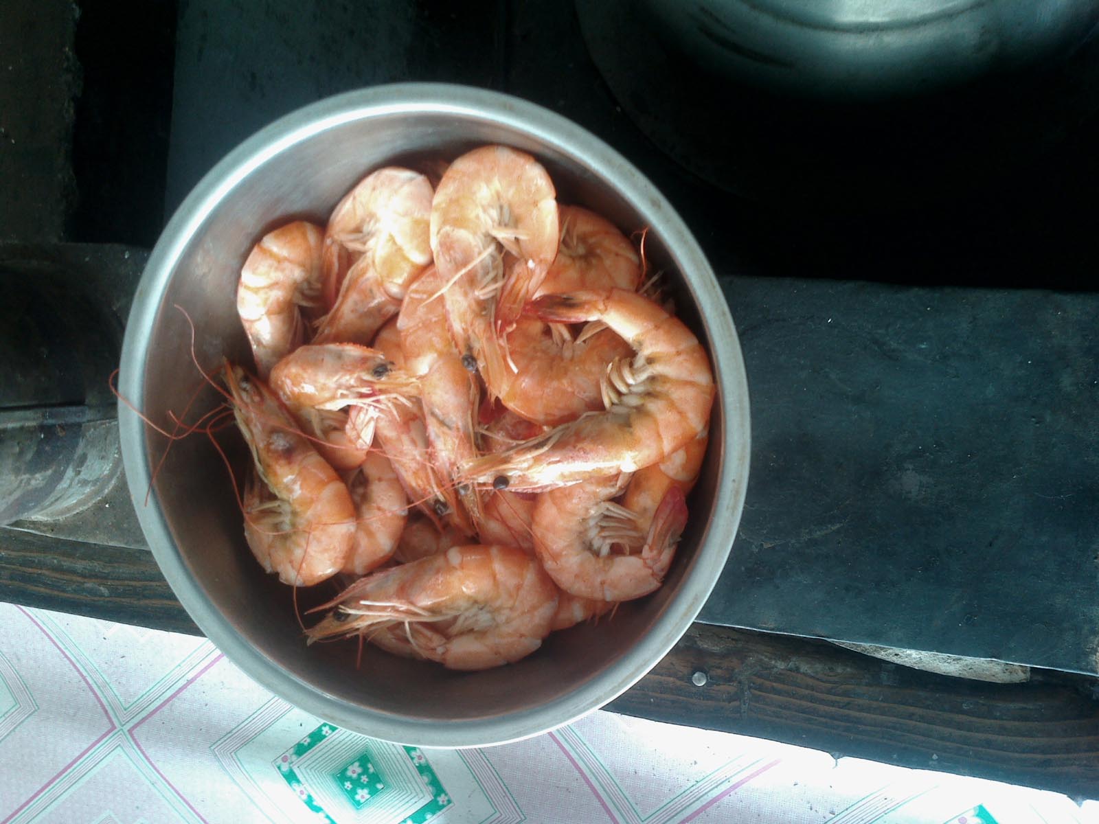 今天是我第一次吃虾,姑姑买了一小堆虾给奶奶,当然我们也能跟着解解馋了。这些虾和电视里见到的一点也不一样,灰黑灰黑的,一捏就能感触到它身外的那层甲,硬硬的。它们一个个弯曲着身子,连好多的腿都圈缩到一块,怎么也想不到它能是一道美食?