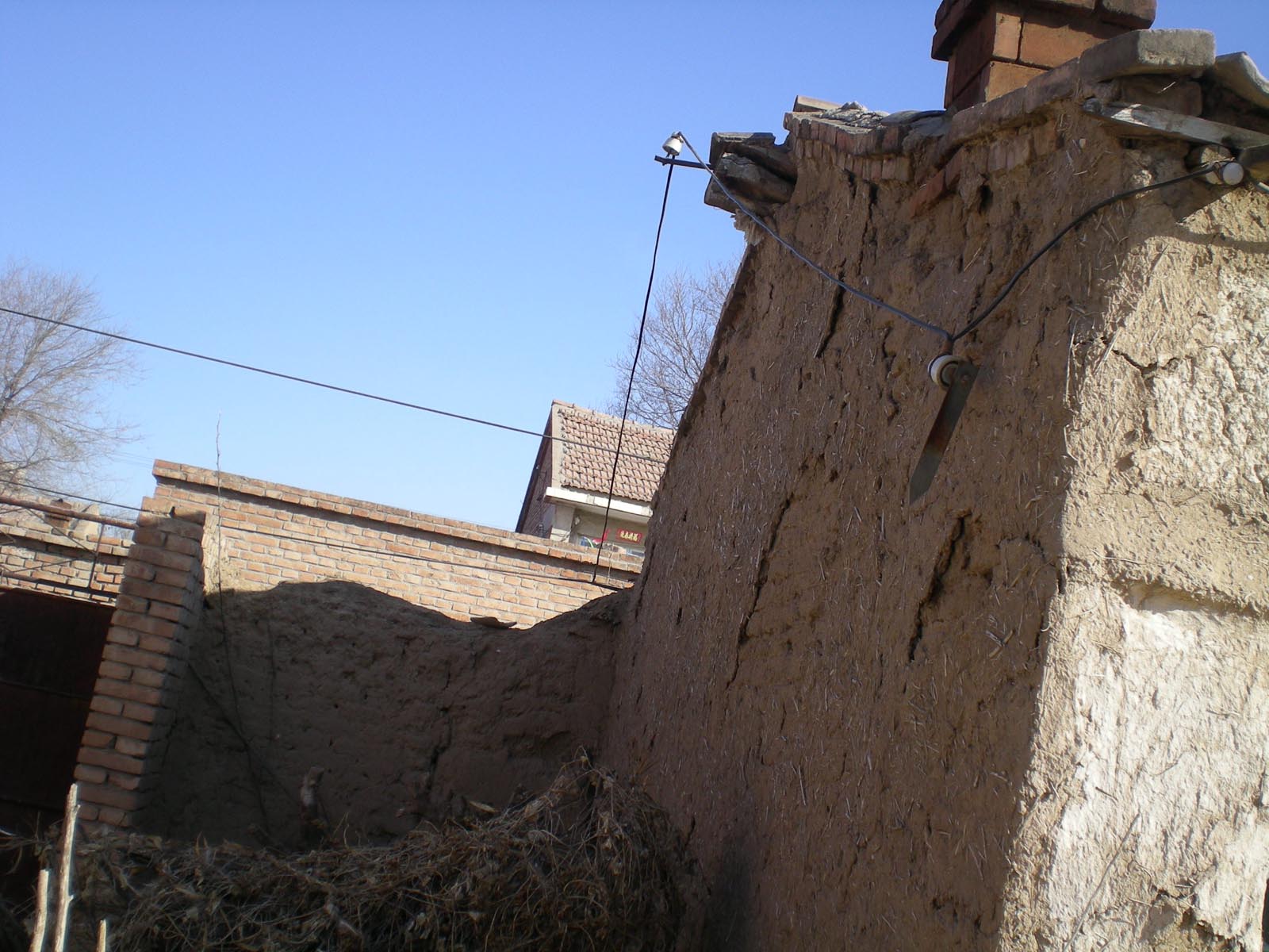 老房子一般都是老人在居住,房子的地基是石头的,墙却是土做成的。土墙很厚,只有厚才能承重。土墙的外面用泥抹一层,也光溜溜的。屋顶有的扣着瓦,有的干脆就泥皮。每年都得抹房,否则就会漏雨。