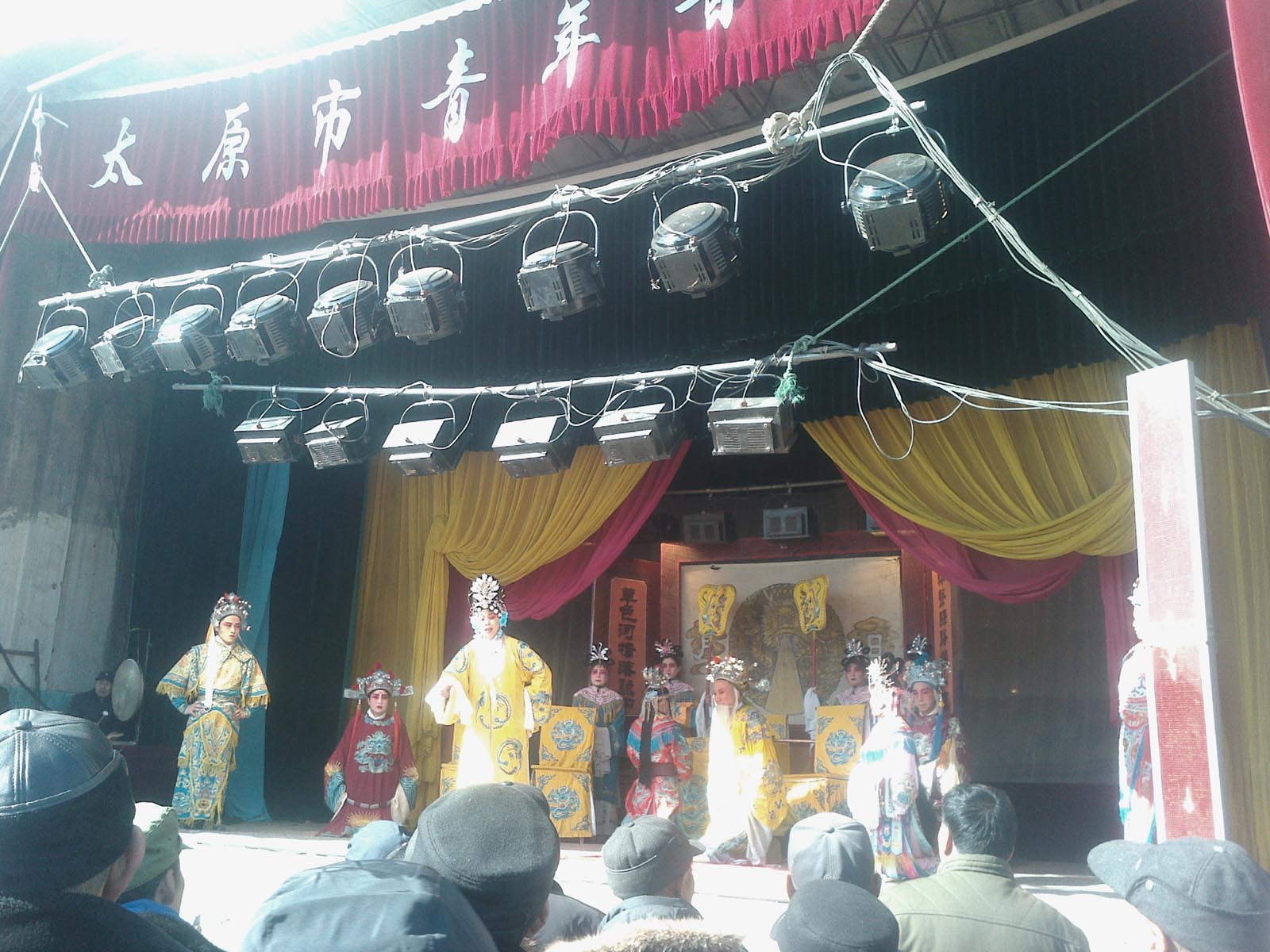 开始唱戏第一天,老天不作美,特别冷。但这没有影响人们看戏的热情,人们一个个穿得厚厚的,提着凳子早早地来到戏场占个好地方。那些前面坐的大都是老人,年轻一些的都站在后面专注地看着戏。