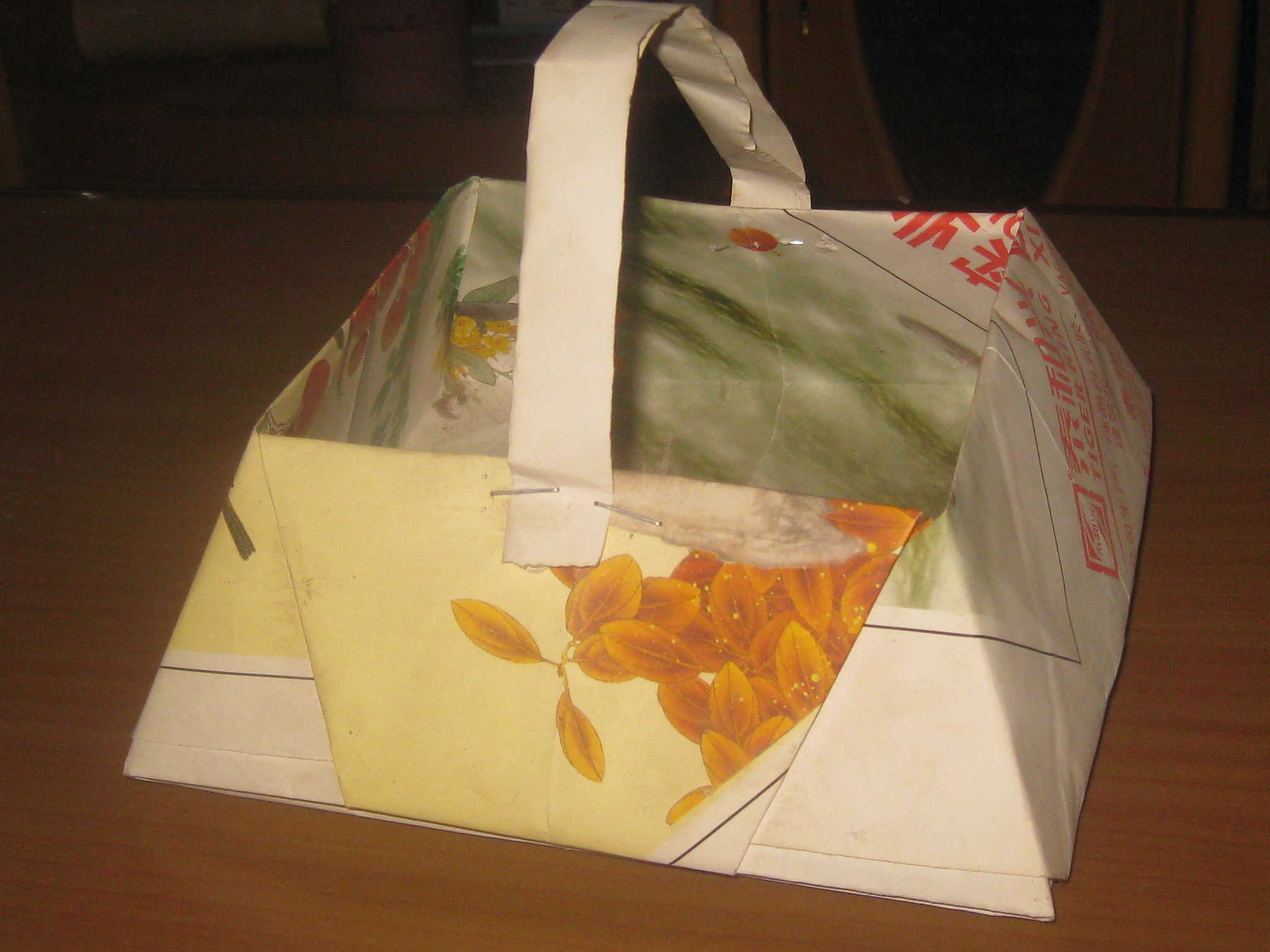再把另一张白纸对着 ,和做门型手工品差不多,可这次要的是个长方形而不是正方形,在经过多次的改变,就又可以看到一个立体的小篮子,而刚才做的心型制品可以派上用场,把它用胶带粘在小篮子的四周,就这样,一个漂亮,简单的收纳盒就做好了!