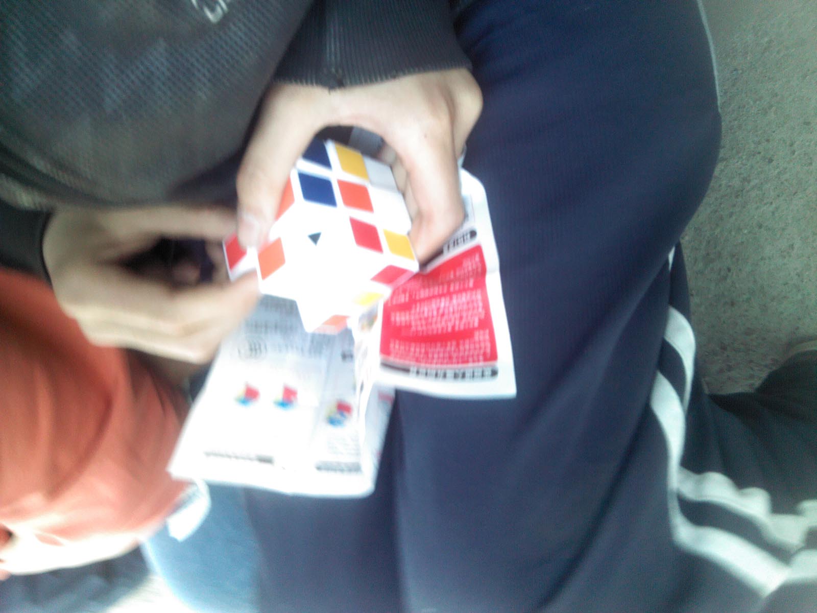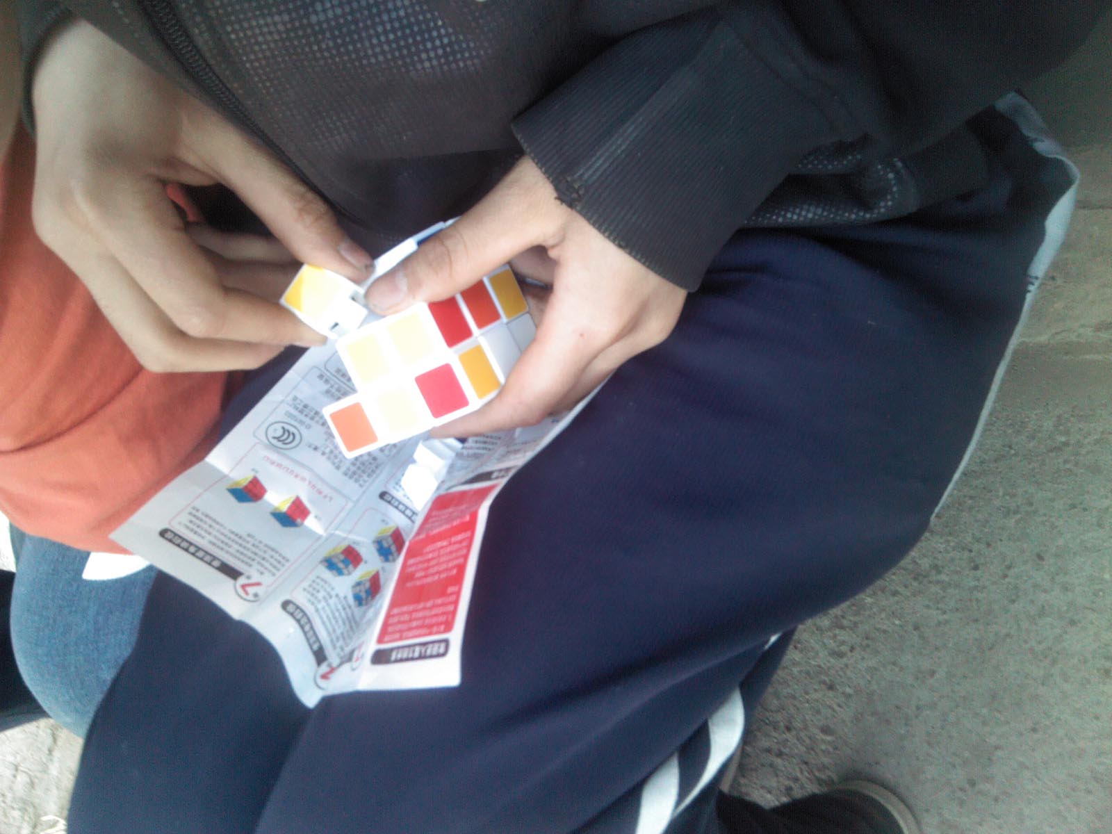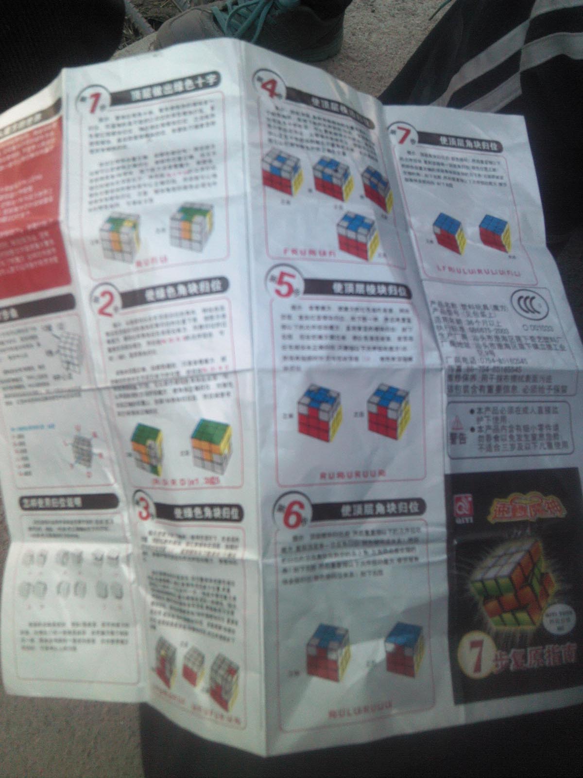 后来,我又请教了同学们,我明白了一个规律,魔方必须先拼十字,再拼棱角,最后一层一层地完成。经过不断地练习,我竟然能不看说明书也能拼好了,我真不敢相信自己,我居然成功了。