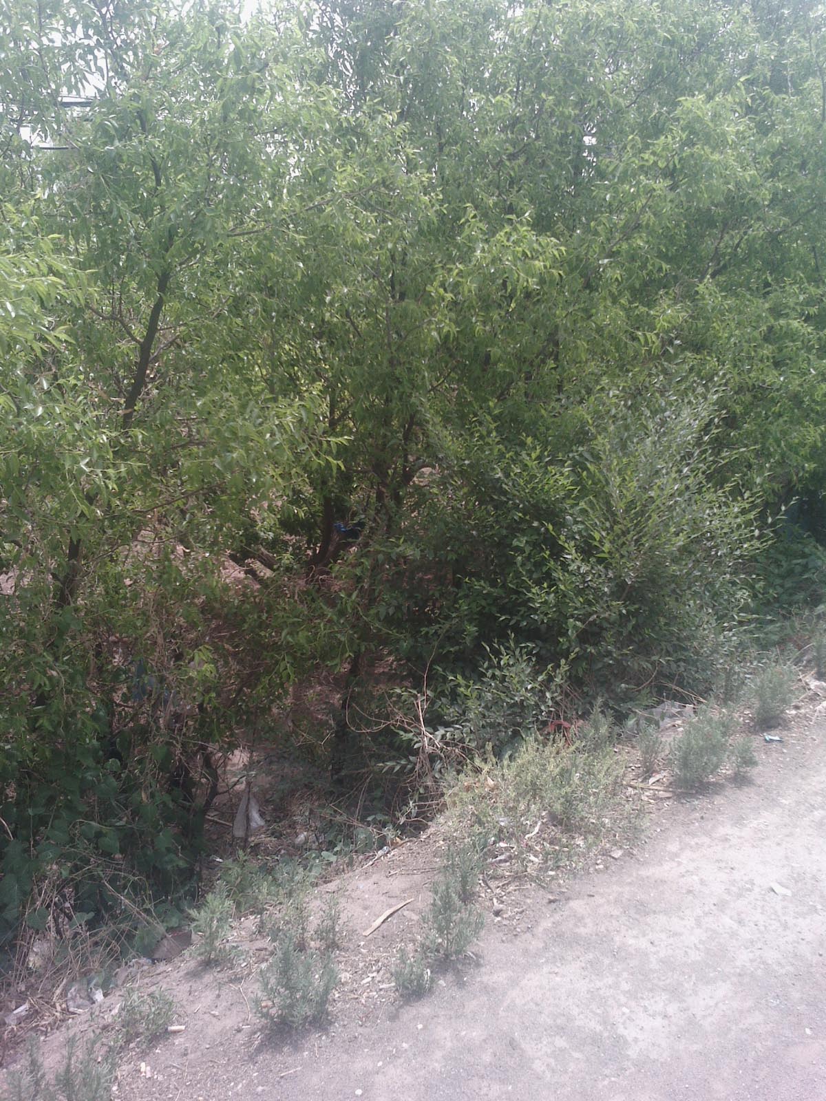 在玉米地的夹心里有两块果园,是苹果树和杏树组成的。树杆粗壮,树枝很多,树叶密密麻麻,站在地边很难看到里面树的样子。这就是果园的特点——茂密,站在林边有种透不过气来的感觉,其实是果园里的热浪往外拥造成的。