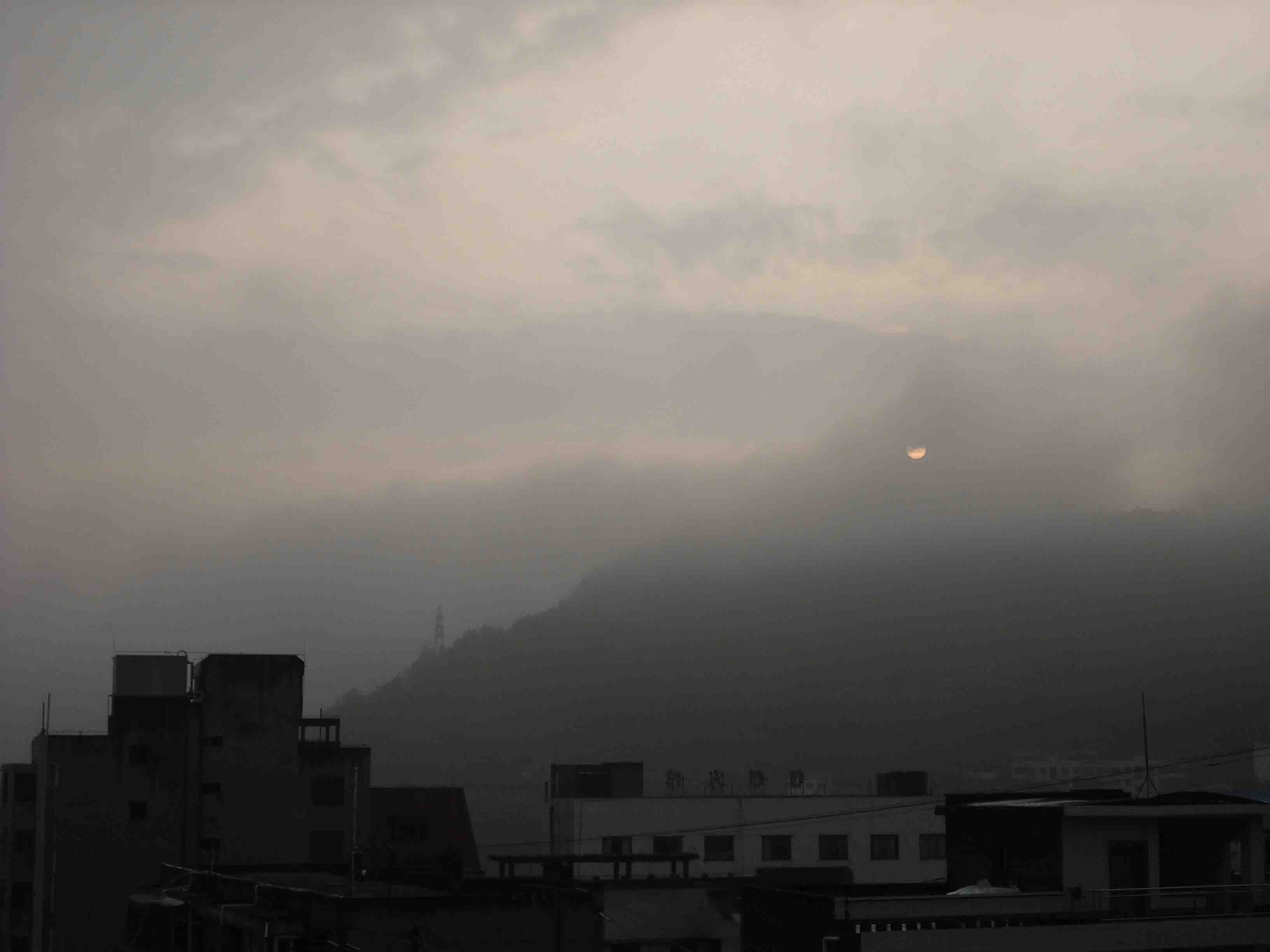 瞧!雾慢慢的散了,它像一个刚学会走路的婴儿似的蠕动着,太阳也跟着抢镜头露出那红彤彤的脸蛋,从那害羞的脸庞上发出微微地光和热,给我们带来了生机和美好的一切。