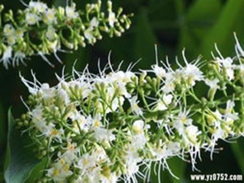 每到初夏,七叶树就开花了,繁花满树,一串串白色花絮,挂满枝头,好似一盏盏华丽的烛台。四片淡白色的小花瓣尽情绽放,花蕊内七个橘红色的花蕊向外吐露芬芳,花瓣上泛起的黄色,使小花更显俏丽。而且,远远望去,整个花串又白中泛紫,像是蒙上了一层薄薄的面纱。
