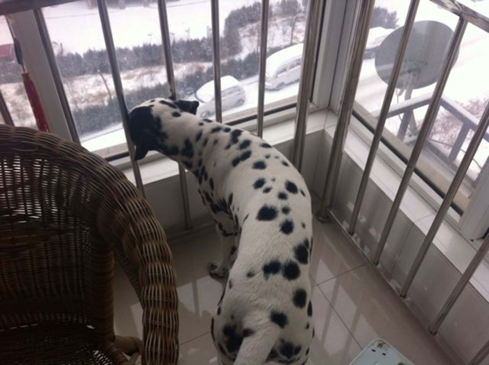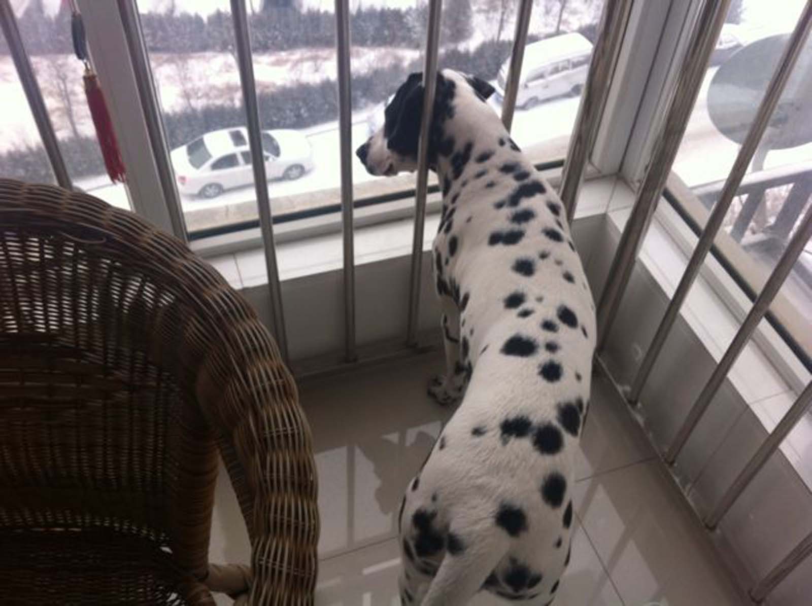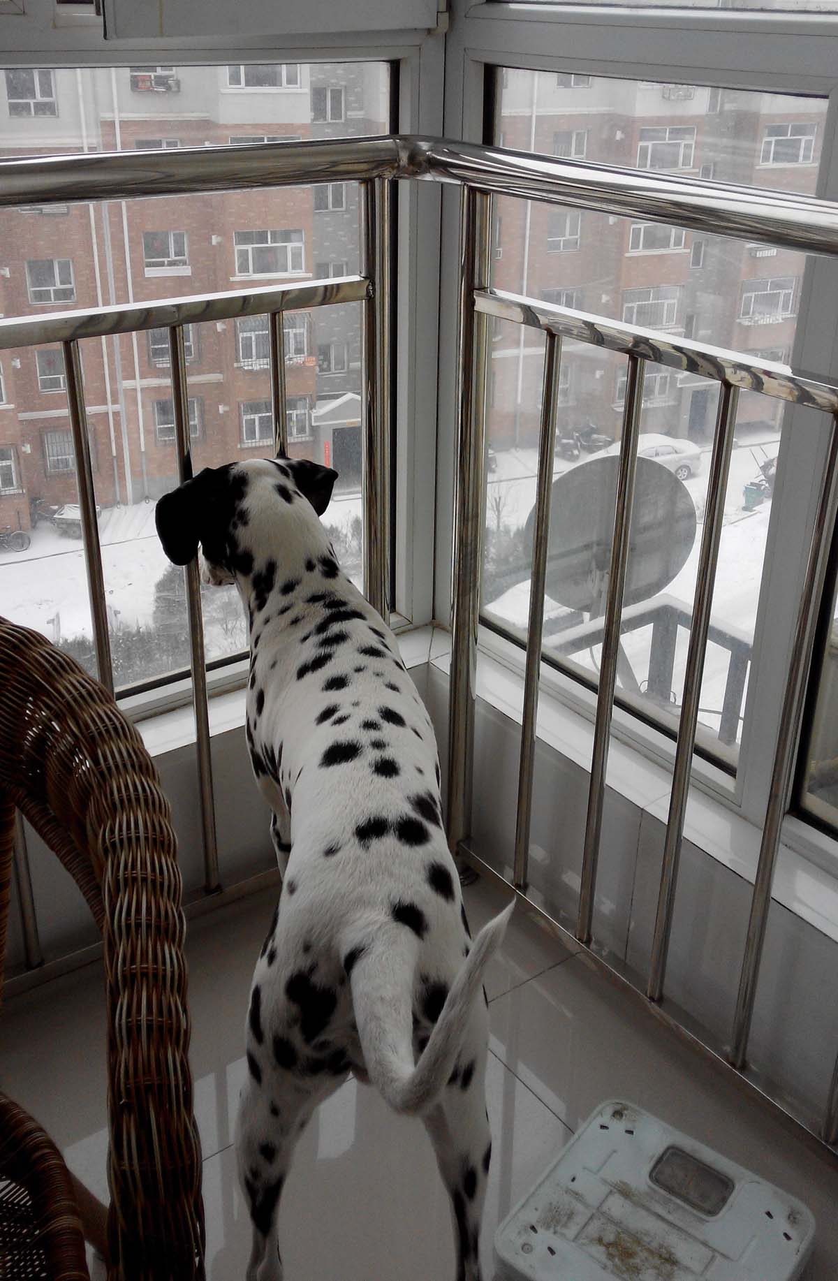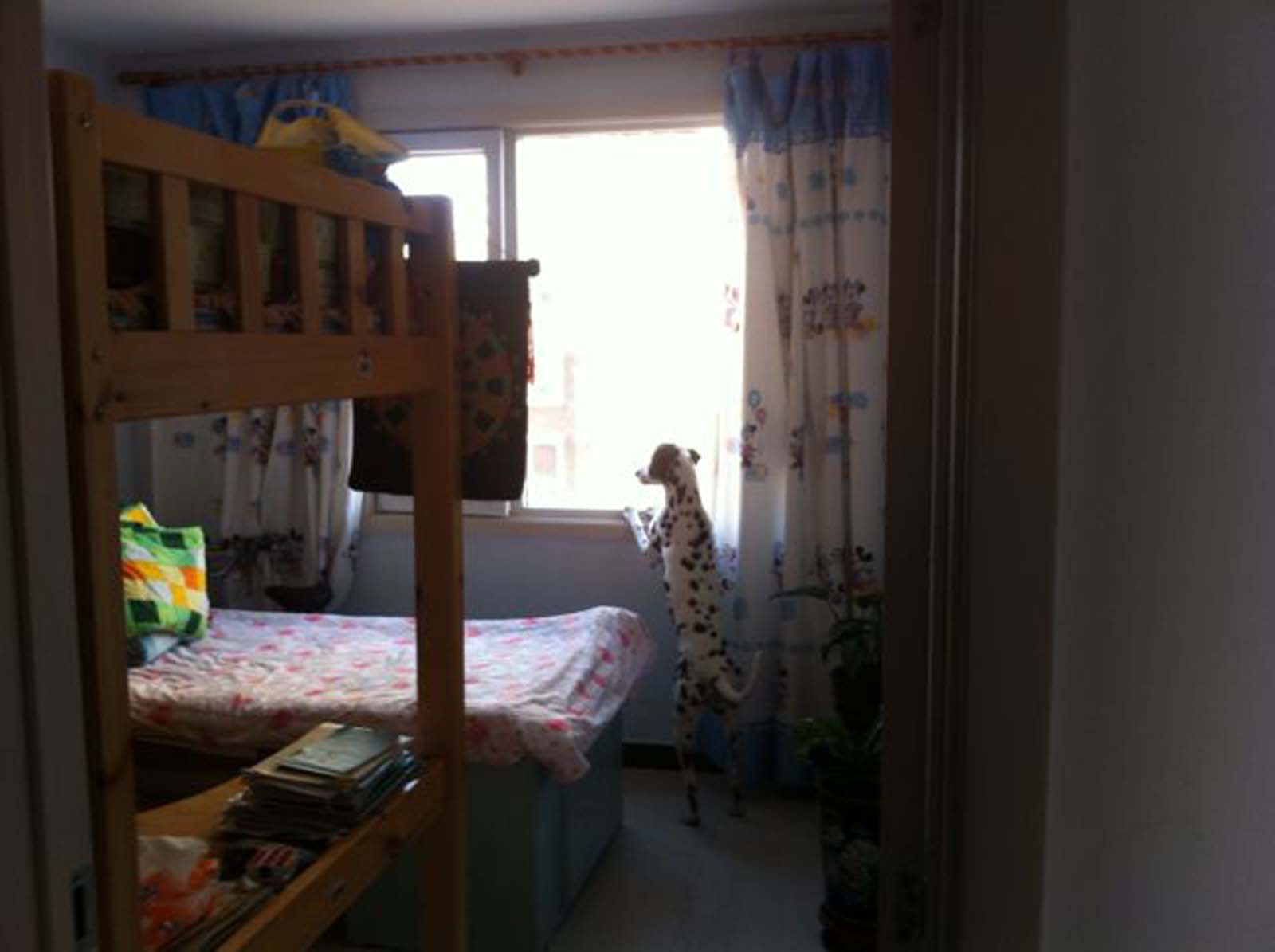 如果主人出门前没有对它说马上回来,它就明白这是要离开比较长的时间了。这时它就会站在阳台上,把小脑袋从护栏的缝隙里面探出,静静地,不发出任何的声音,全神贯注地看着外面,看着远方,眼神里面充满着平静,安详地守候着主人的归来。当主人回来,它立刻会十分高兴地欢蹦乱跳,站起来将两个前爪趴在主人身上,尾巴摇得就像风中的旗一样,嘴里还“呜呜”地叫着,似乎在对主人诉说着思念。