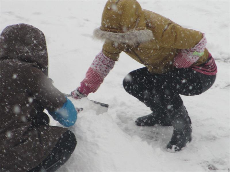 我们开始堆雪人了,可是姑姑说了个堆个的我们要比赛看谁堆的雪人最漂亮,开始堆雪人了,我先弄了一个大圆球,放在地上,捡四个小石头,弄在雪人的肚子上,然后再弄一个小雪球,我弄了好半天也没有弄好,气的我把雪球打了我姑姑的头上,又弄了我姑姑一头白头发,好漂亮,我和姑姑的笑声飘荡的好远好远!