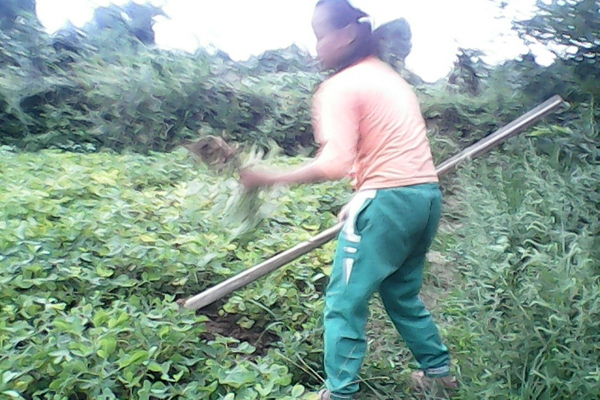 挖。首先要用锄头将花生连根挖出,但因为部分花生已经成熟很久了,挖的时候会掉,因此要将落下的花生捡起来。挖完后会有很多泥土“附”在花生上,所以要把花生甩几下,尽量把泥土甩干净。摘。花生挖出来后,就要将花生一颗颗地摘下来,而花生上的草则用来烧火。