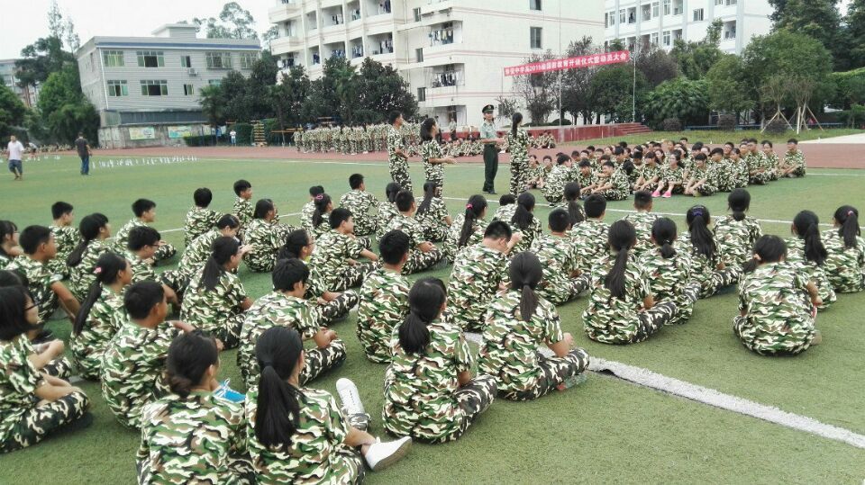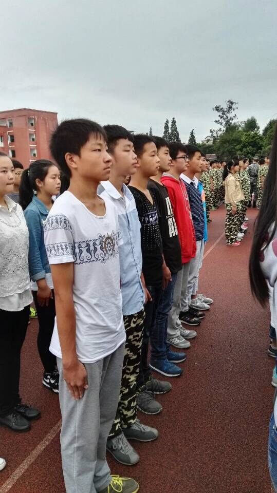 第二天就没有那么简单了。早上一到操场就站军姿半小时,腿都痛了,然后教官又教我们齐步走,敬礼,还有甩手的动作,同样要求严格。 终于连长下令休息了,于是我们就和教官聊了起来,教官还让我们唱歌。哈哈,原来教官也不是一直都很很严肃的。 第三天早上下着小雨,没有到操场训练,教官就到我们的教室里教我们唱军歌,还给我们买东西吃,和我们开玩笑。 午饭后,雨还在下,我们都还想在教室里和教官一起耍,可一声令下,我们又全部到了操场里进行训练。