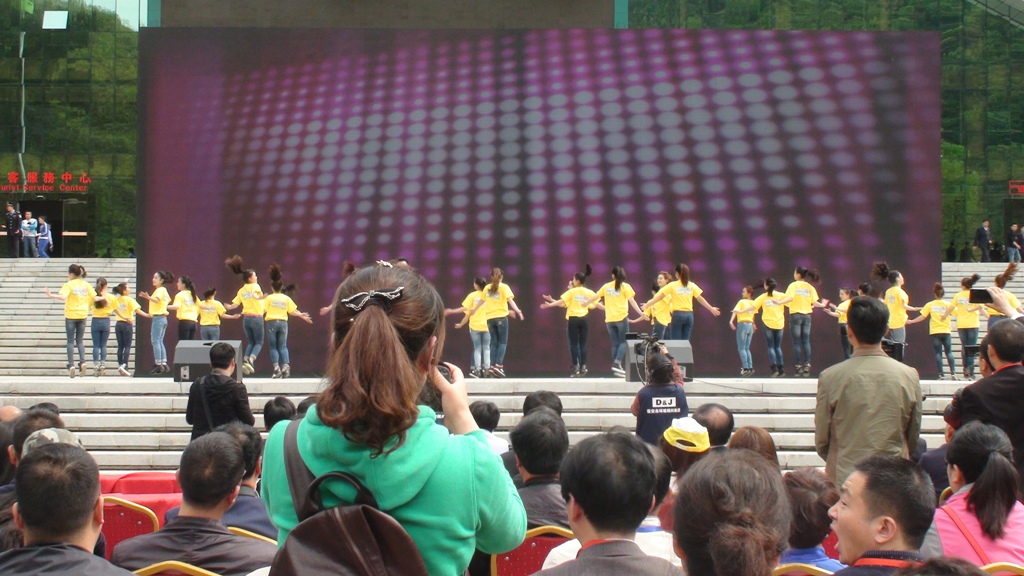 哇!一个个大约14岁的女孩穿着同样的服饰,在舞台上尽显舞姿。那柔软的舞姿,如同风中的柳条儿一般轻柔。风柔软的吹着,她们轻盈的舞着。山中的翠木如同为她们鼓掌一般,摇曳着。有人用手机记录下了这一片段,有人拍手叫好。上面的女孩们,你们真棒!我在心里为你鼓掌!
