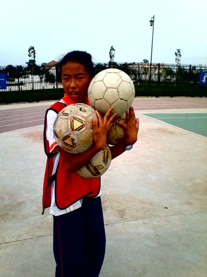 “喂,你们也太不够意思了,训练都不拿球,让我一个人拿四个球,我容易嘛,哼!”忽然,背后有人喊道。哦,原来是她。