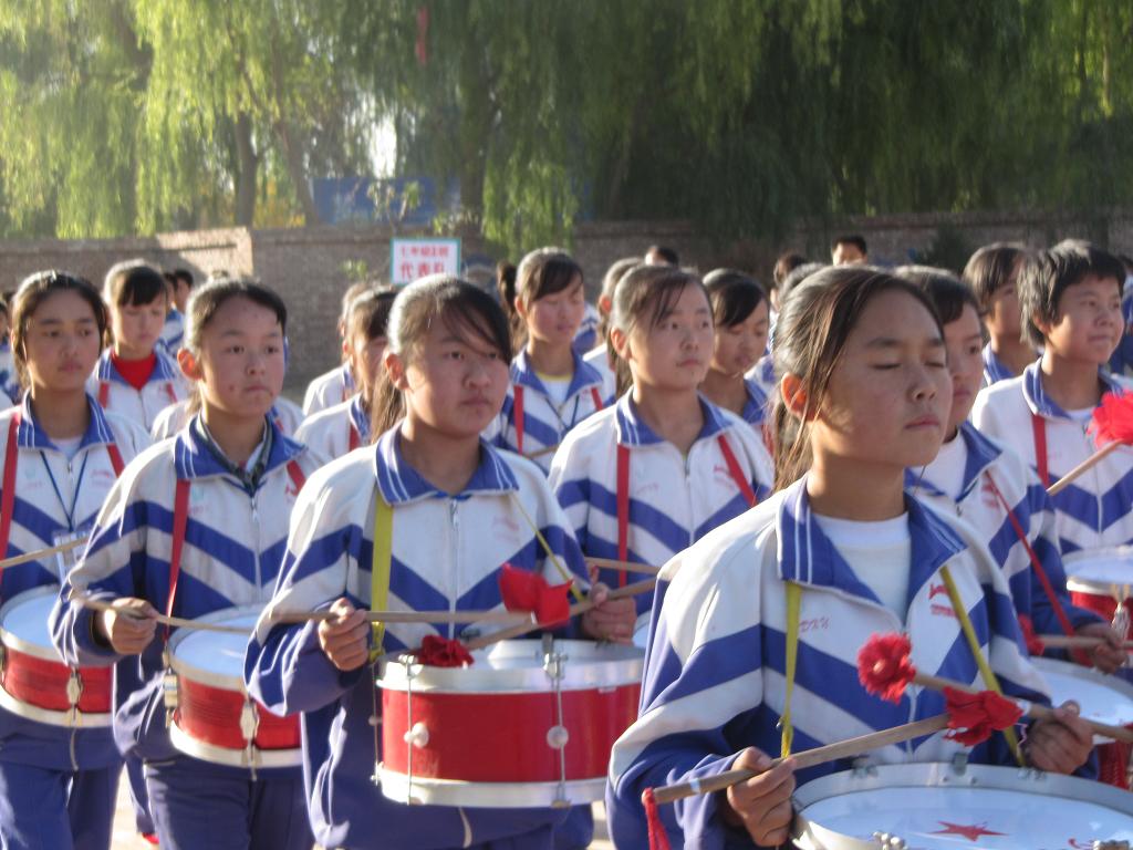 接下来就是检阅。运动健儿们精神抖擞地进入操场。向我们走来的是鼓乐队,清一色的女生,身着整齐的校服,英姿飒爽,精神饱满走向主席台,接受检阅。