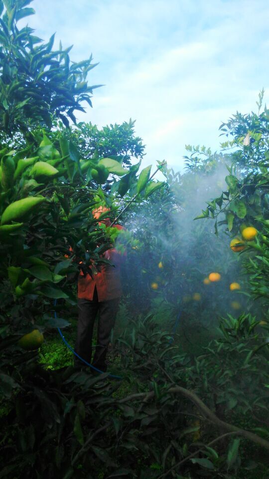 打药可不是一件简单的事,要钻橘子林,还要拖打药的带子,还要控制好药的分量,不然果子就会长得奇形怪状的。 今天是星期天,趁着好天气,一大早爸爸就在整理打药的装备了,检查好带子,试好打药的机器,在桶里配好药,爸爸妈妈先把机器和袋子抬到园子里,然后又回来抬药桶。 爸爸握着喷头,妈妈理袋子,听他们说"可以了",我在家里合上了闸,就开始打药了。
