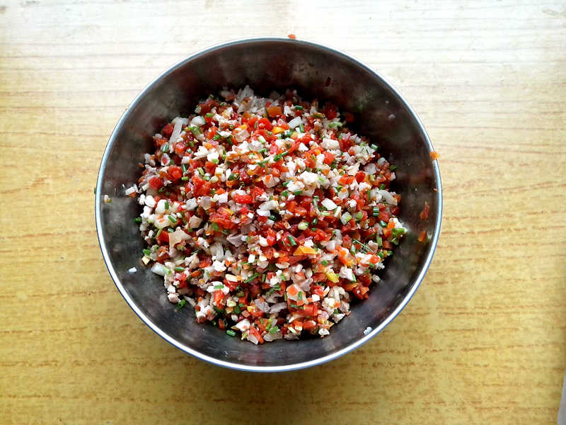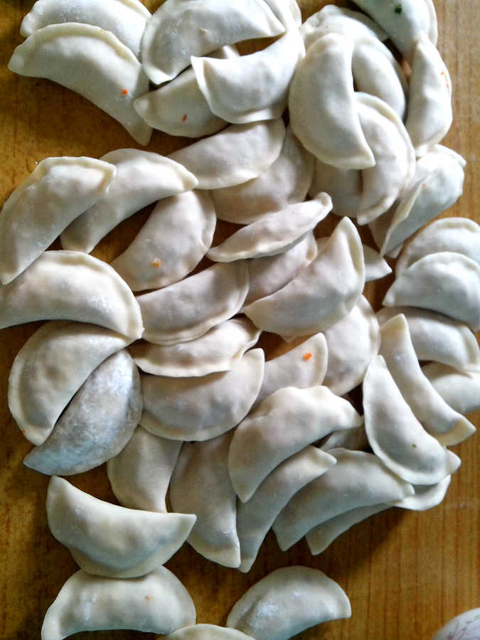 吃过午饭后,我们大家便开始忙起来了。我负责擦桌子和洗菜,外婆则负责把它们统统切碎,放进一个大碗里面,再拌上调料,包括盐、花椒粉、切碎的豆瓣和小葱。这样饺子馅便做好了。而我最小的表妹则围着外婆和我团团转,吵着要饺子皮包饺子。她呀,才三岁多一点哪会呀?我们可不想让她浪费粮食,她嘟着小嘴一副不高兴的样子,可爱极了。